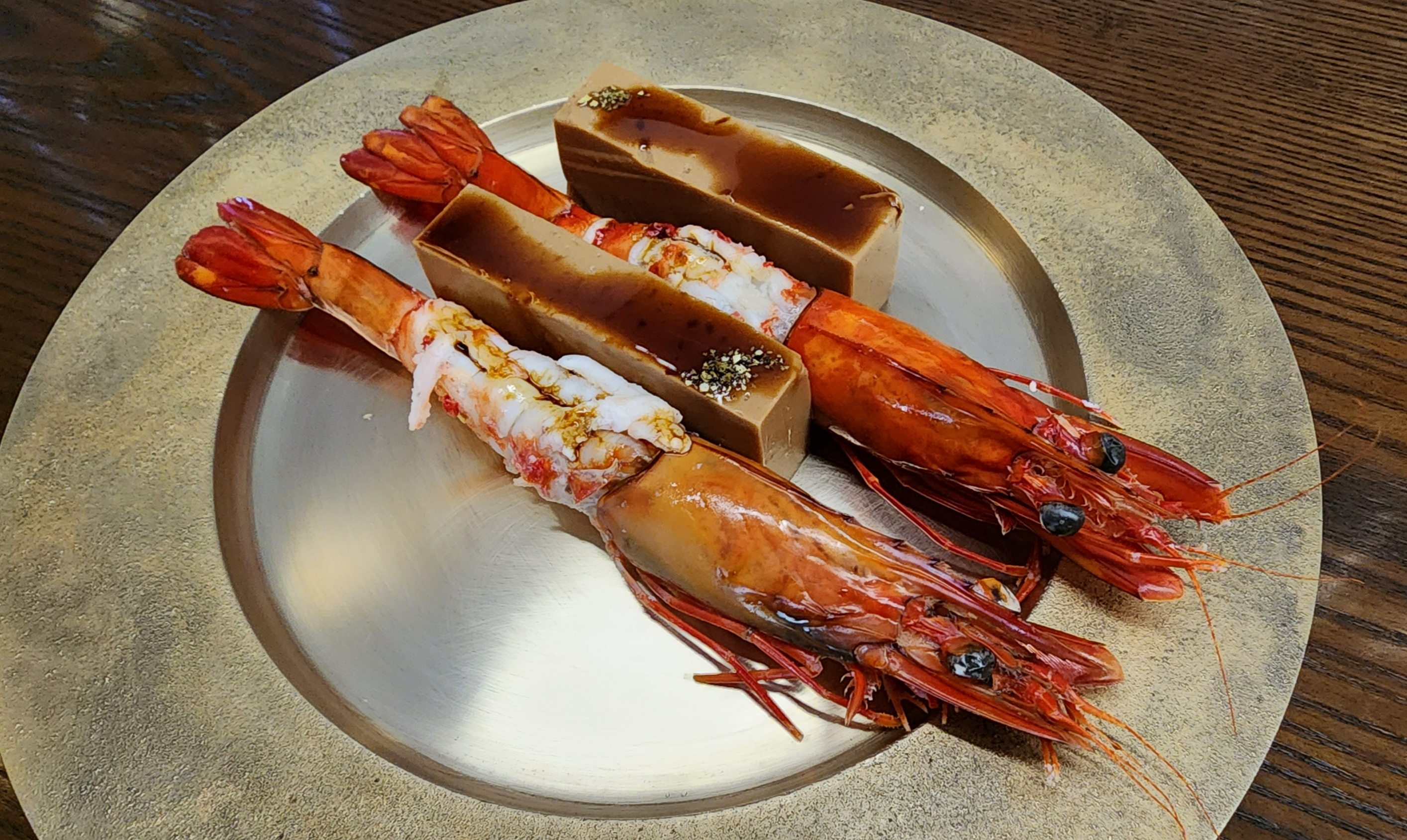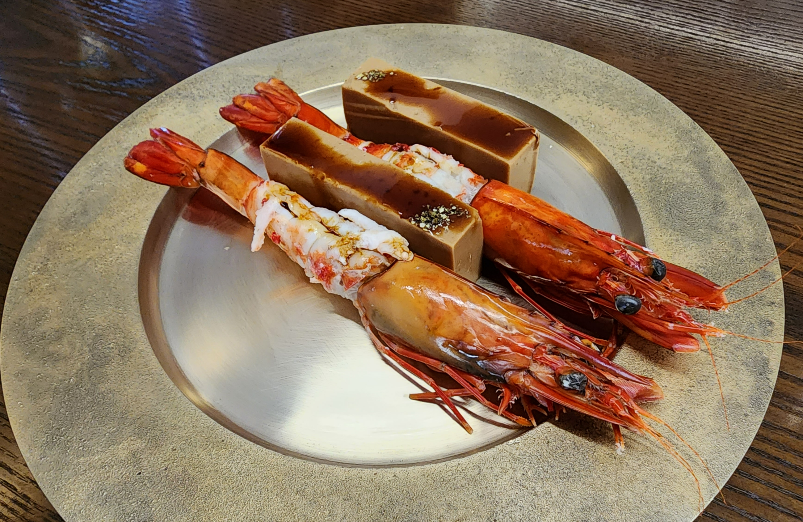 도토리묵과 반숙한 새우를 조금씩 잘라서 곁들여 먹으면 핵꿀맛이다.
