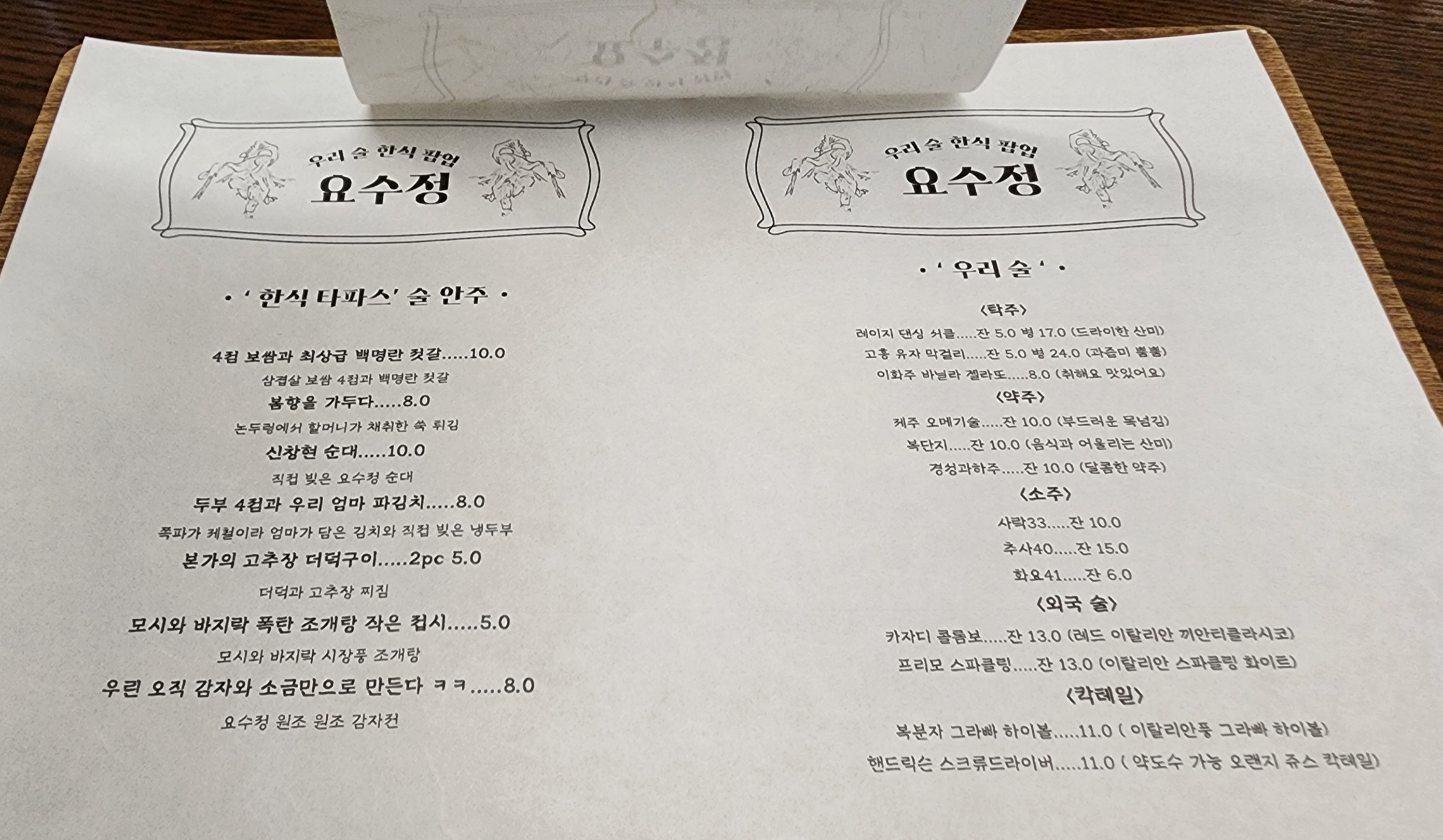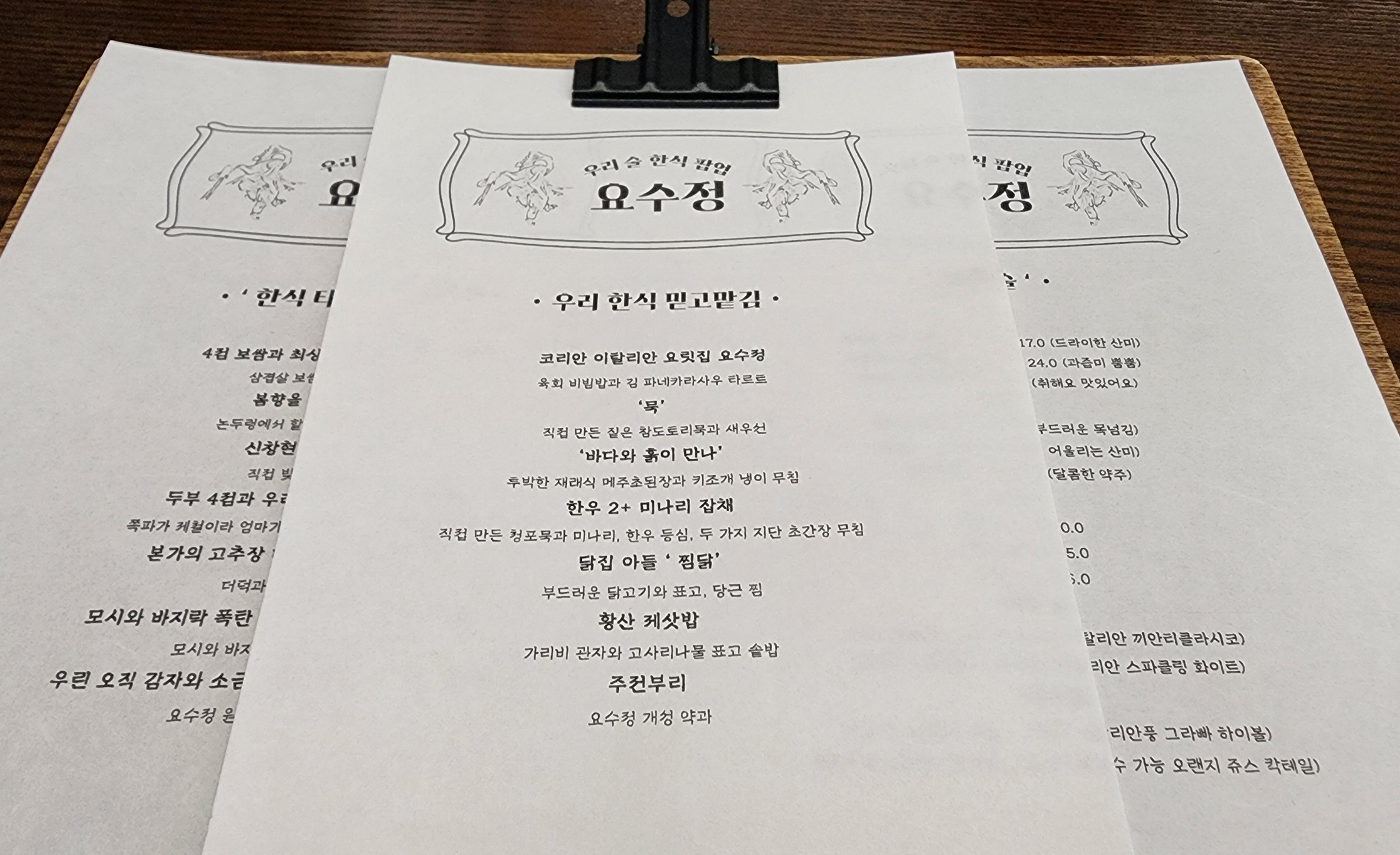 술안주용 추가 메뉴도 매우 훌륭하다. 우리술 메뉴 또한 간단명료하지만 좋은 술들로 가득하다.