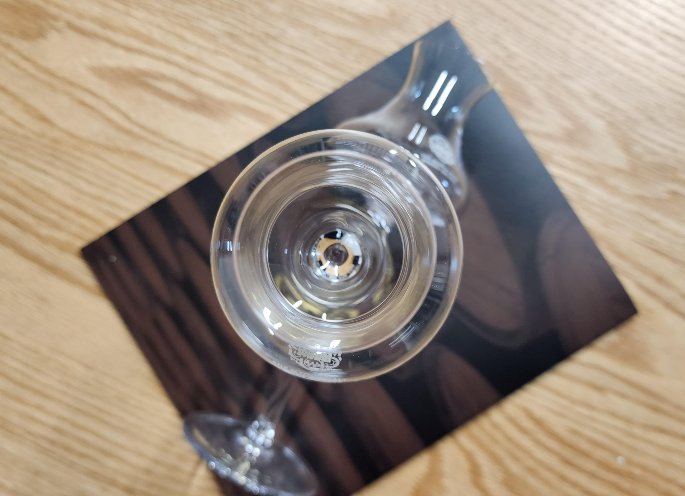 오~ 기대했던 것보다 훨씬 괜찮다. 진짜 그냥 INAO 테이스팅 글라스처럼 기본적인 스템 글라스일 줄 알았는데, 뭔가 고급스러운 느낌. 보울의 모양은 복주머니처럼 생겼다. 아랫부분은 널찍하고 림 쪽은 좁게 모아져 있어서 향을 예쁘게 피워내면서도 직선적으로 전달해 줄 것 같은 느낌.