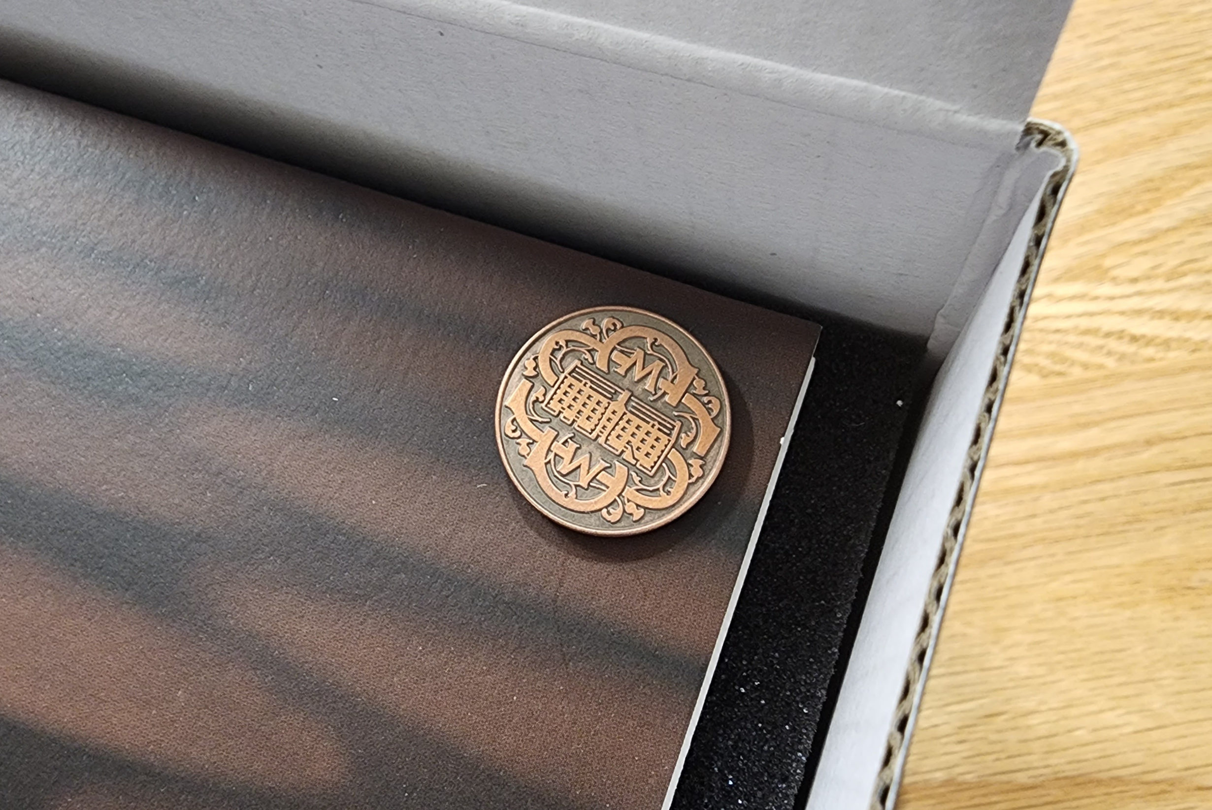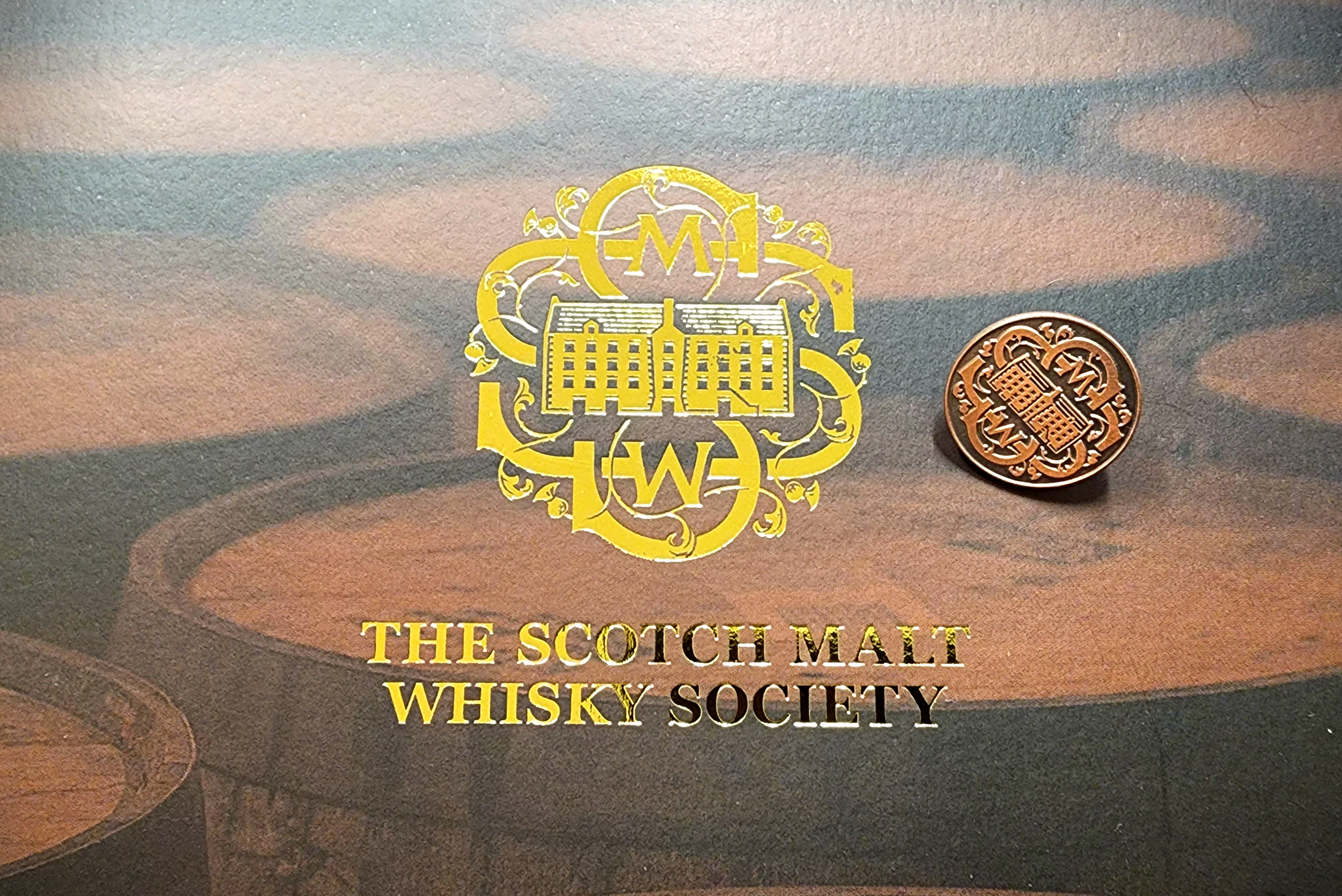 브로슈어 위에는 SMWS 배지를 달아놓았다. 무광에 클래식한 느낌인데 기대했던 것보다 고급스럽다. 어디다 달고 다닐까 고민하게 되는.. 그러다 잃어버리면 안 되는데 ㅎㅎㅎ