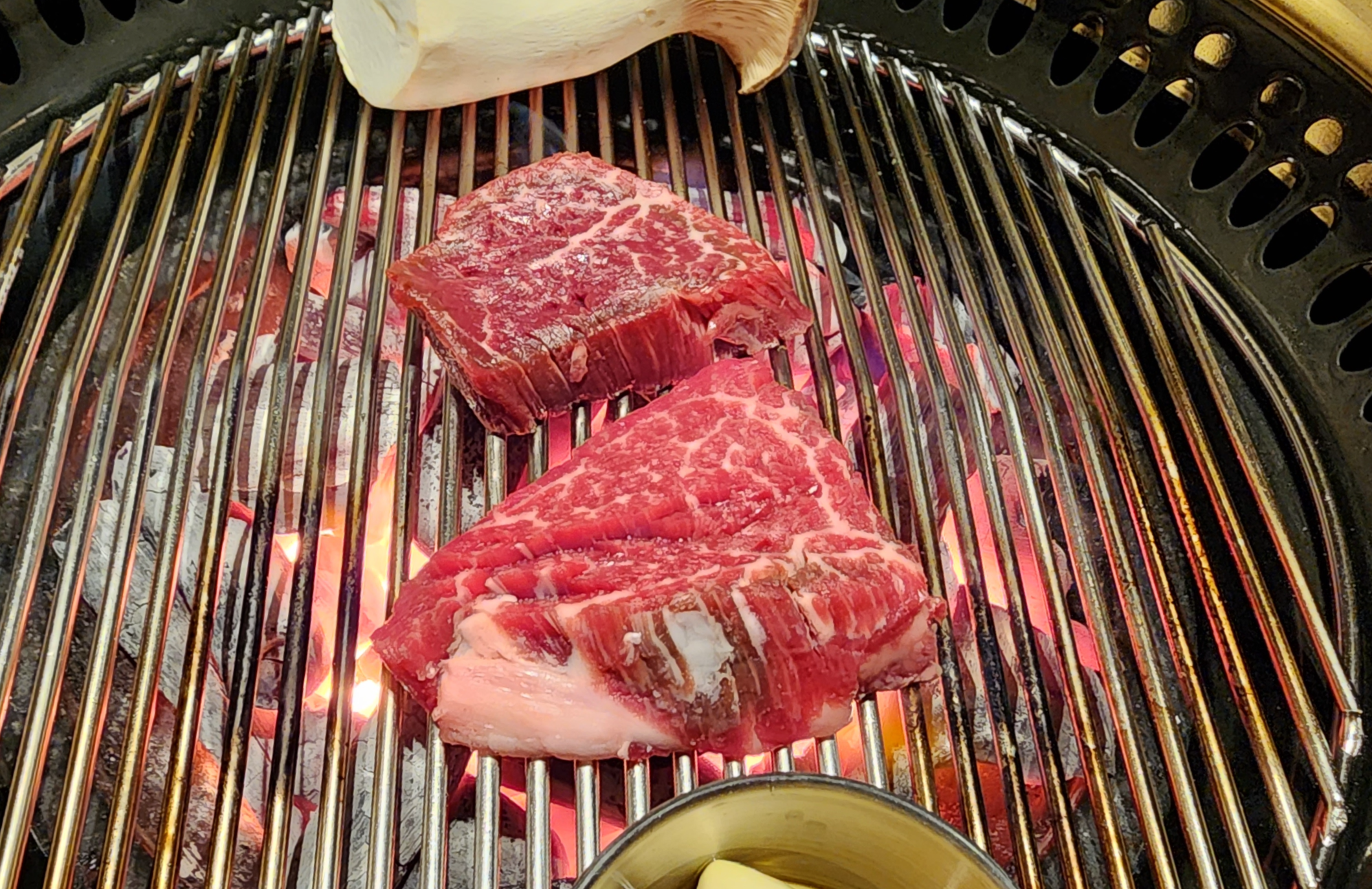 딱 알맞게 구워지는 고기들. 구울 때 보니 고기의 품질과 관리 상태가 상당히 좋아 보였다.