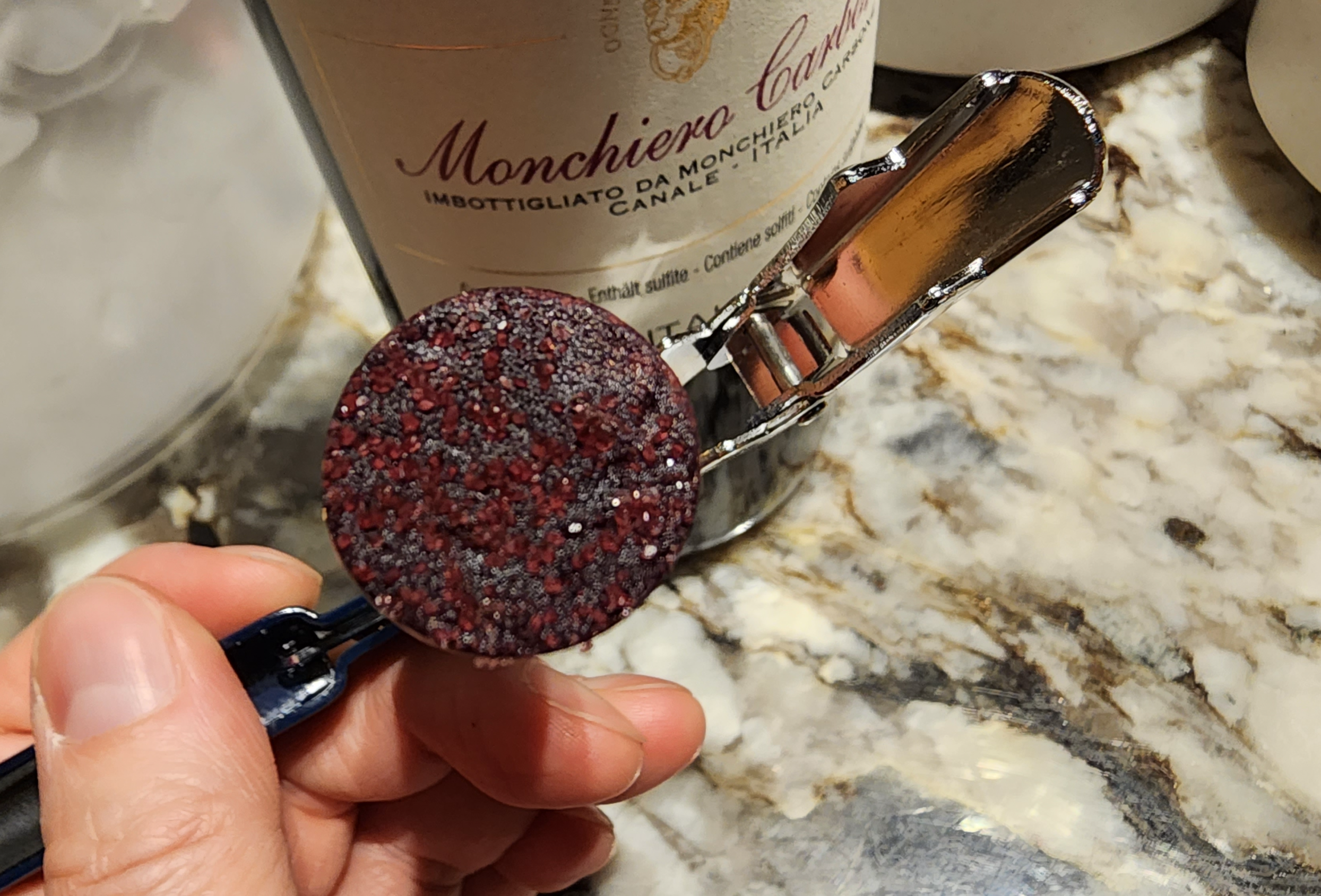 첫 번째는 피에몬테(Piemonte) 레드 와인, Monchiero Carbone Mon Birone Barbera d'Alba 2016. 코르크에 주석산이 상당히 많이 붙어있는데 상태는 아주 좋다. 나중에 보니 막잔에 세디먼트도 제법 있었다.