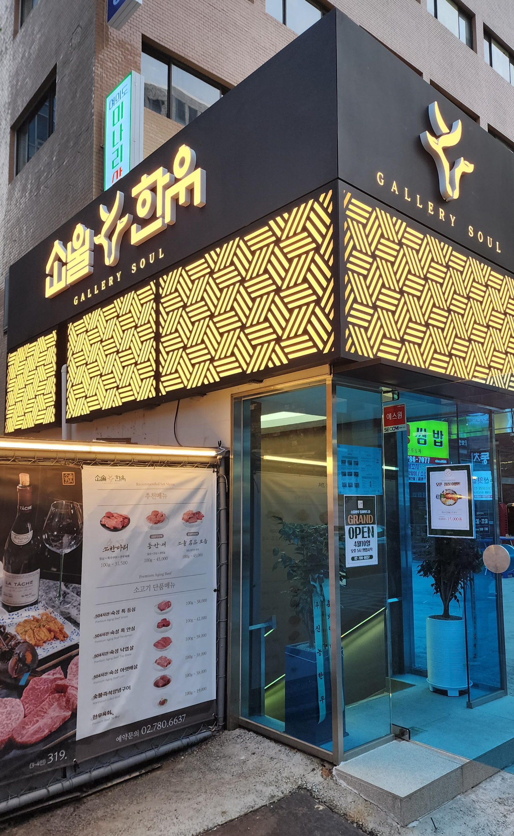 최근 새롭게 오픈한 여의도 한우집 소울 한우. 외관부터 상당히 고급스럽다.