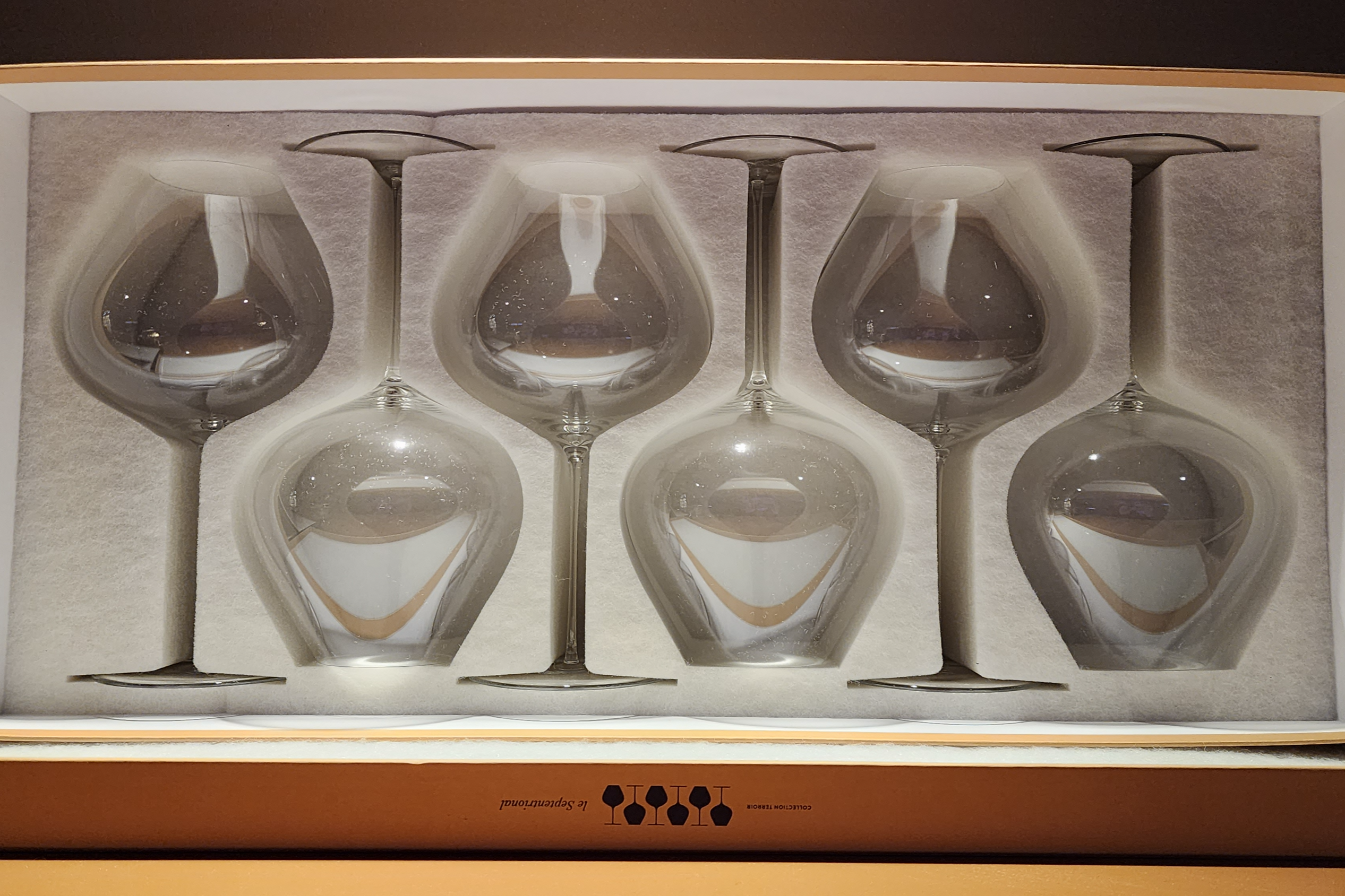 시도니오스 르 셉텐트리오넬 글라스. 부르고뉴 등 섬세한 와인에 적당하다. 향을 화사하게 피워 주는 데다 상당히 가볍고 입술에 닿는 느낌도 좋아 상당히 마음에 든다. 하지만 스템마저 젓가락처럼 얇아서 집에서 사용하기엔 넘나 위험해 보인다. 두어 번 사용하면 깨 먹을 것 같음;;;