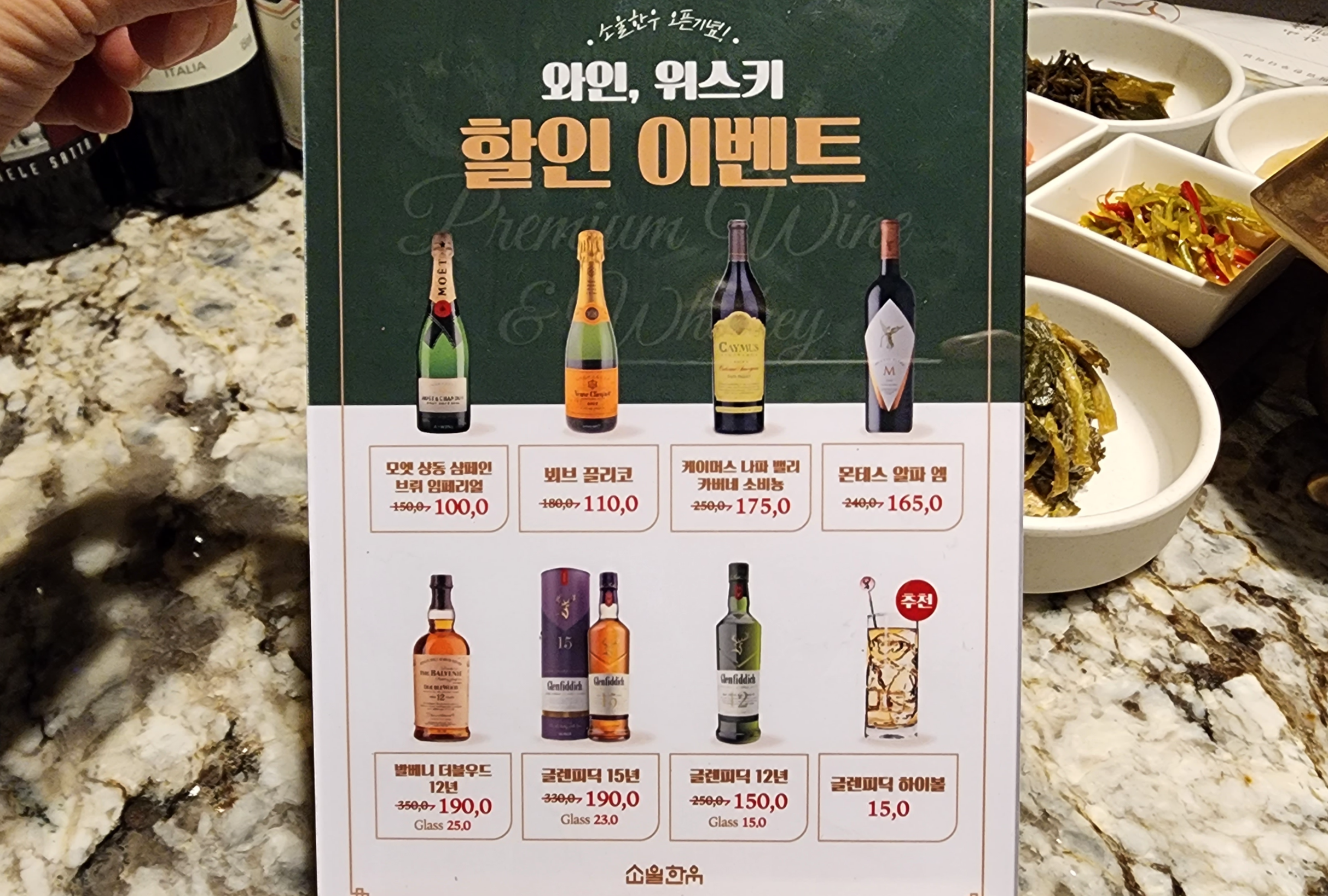 소울한우는 콜키지 프리다. 정확히는 인당 맥주 1잔을 시키면 콜키지 프리. 고방채를 비롯해 대표님이 운영하는 매장은 모두 동일한 콜키지 정책을 적용하고 있다고.