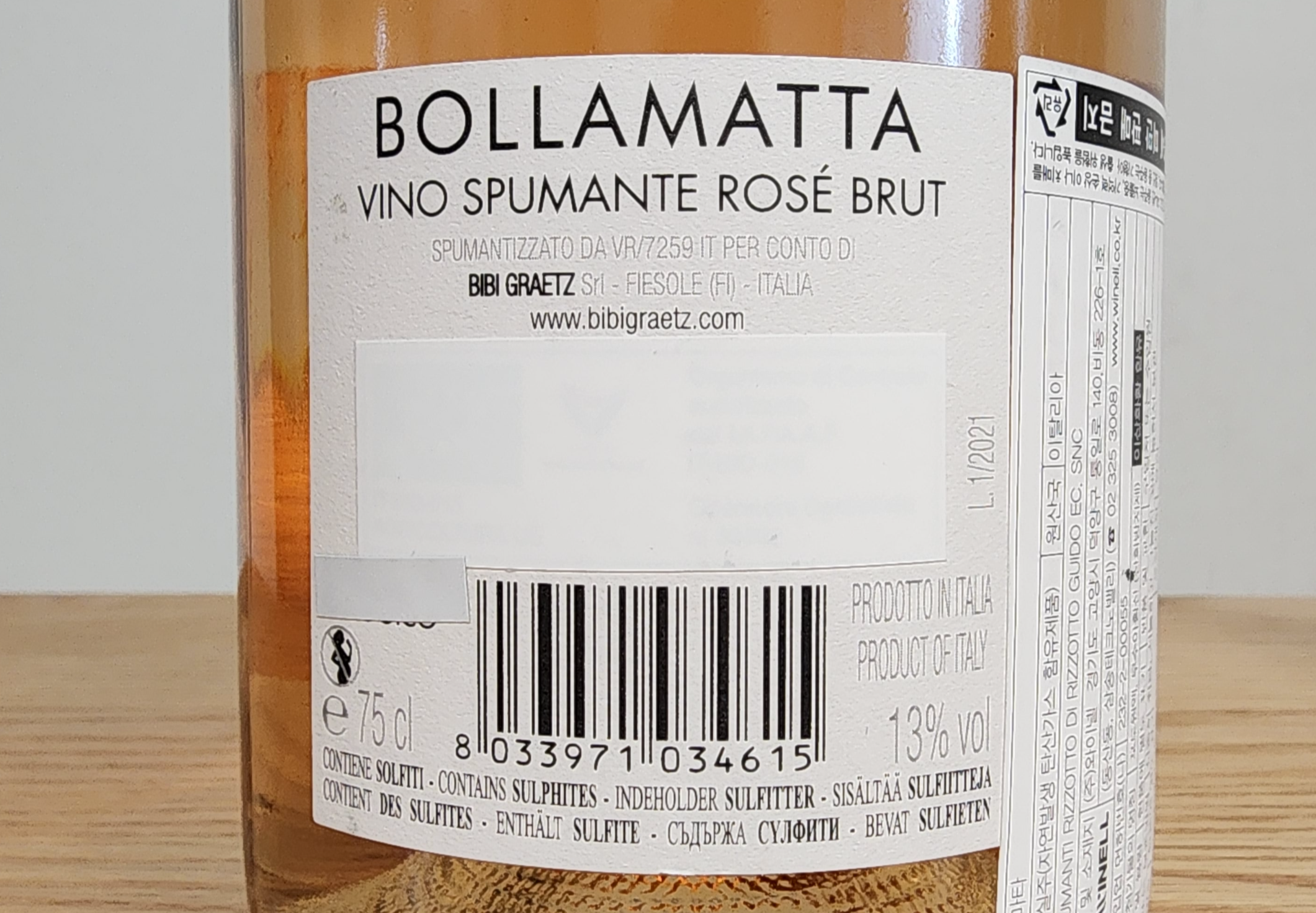 비비 그라츠, 볼라마타 비노 스푸만테 로제 브뤼(Bibi Graetz, Bollamatta Vino Spumante Rose Brut).