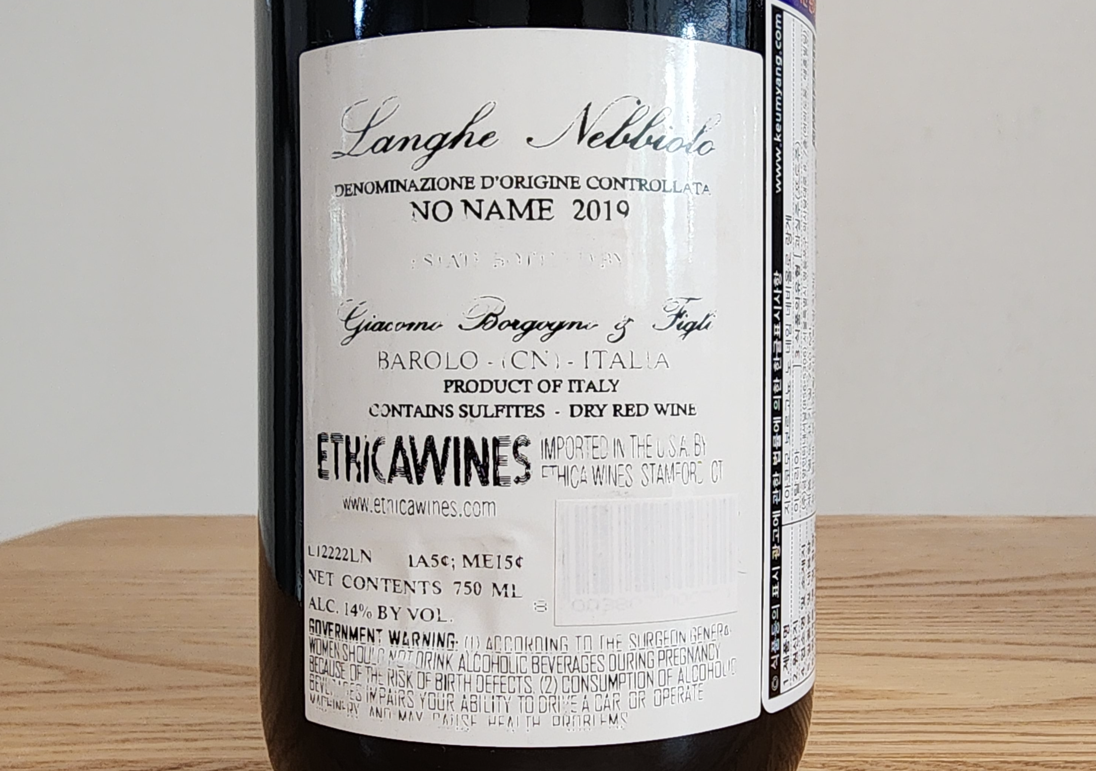 Borgogno, NO NAME Langhe Nebbiolo 2019 / 보르고뇨, 노 네임 랑게 네비올로 2019