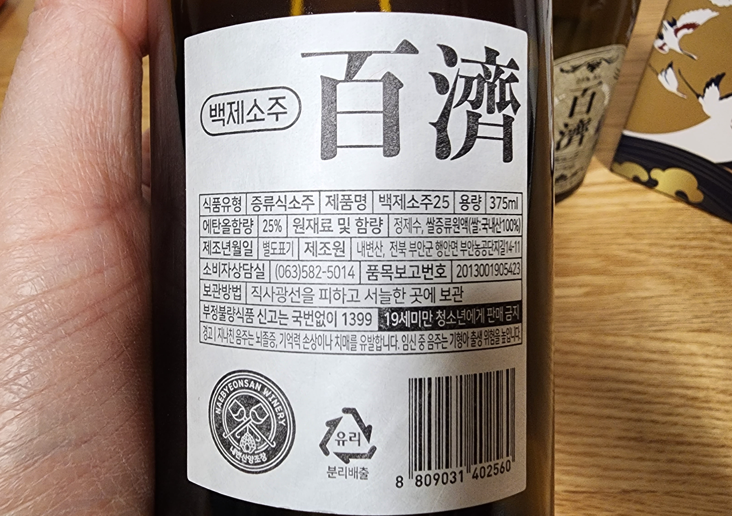 그런데 일반적인 백제소주 레이블과 2020 빈티지 리미티드 에디션의 레이블이 거의 비슷하다.