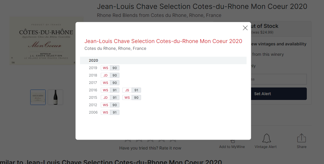 그래서인지 네고시앙 와인임에도 십여 년 이상 평론가들로부터 꾸준히 높은 평가를 받고 있다. 해외가 또한 20달러 전후로 높게 형성되어 있고. 한국에서 주로 풀리는 3만 원 전후의 가격이 높지 않아 보이는 이유다.