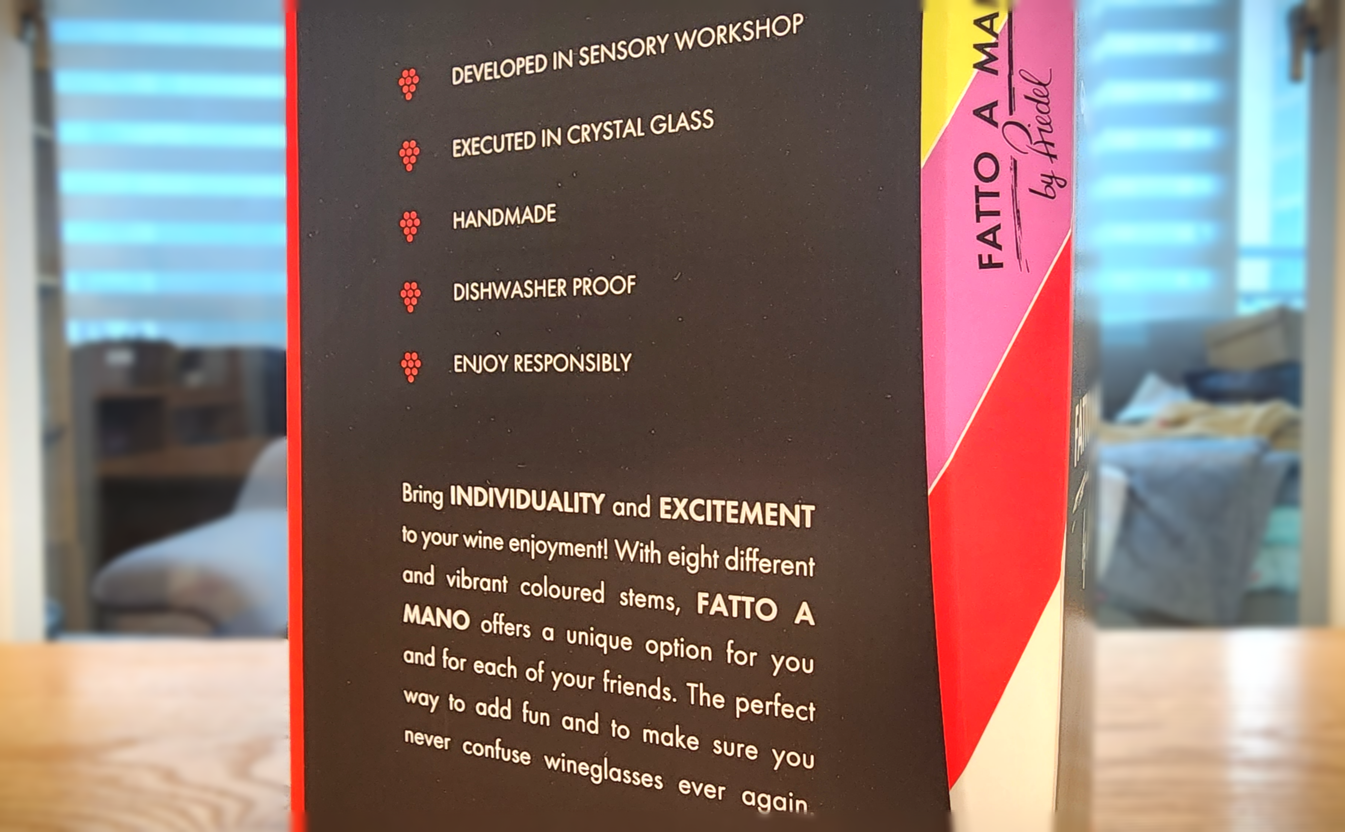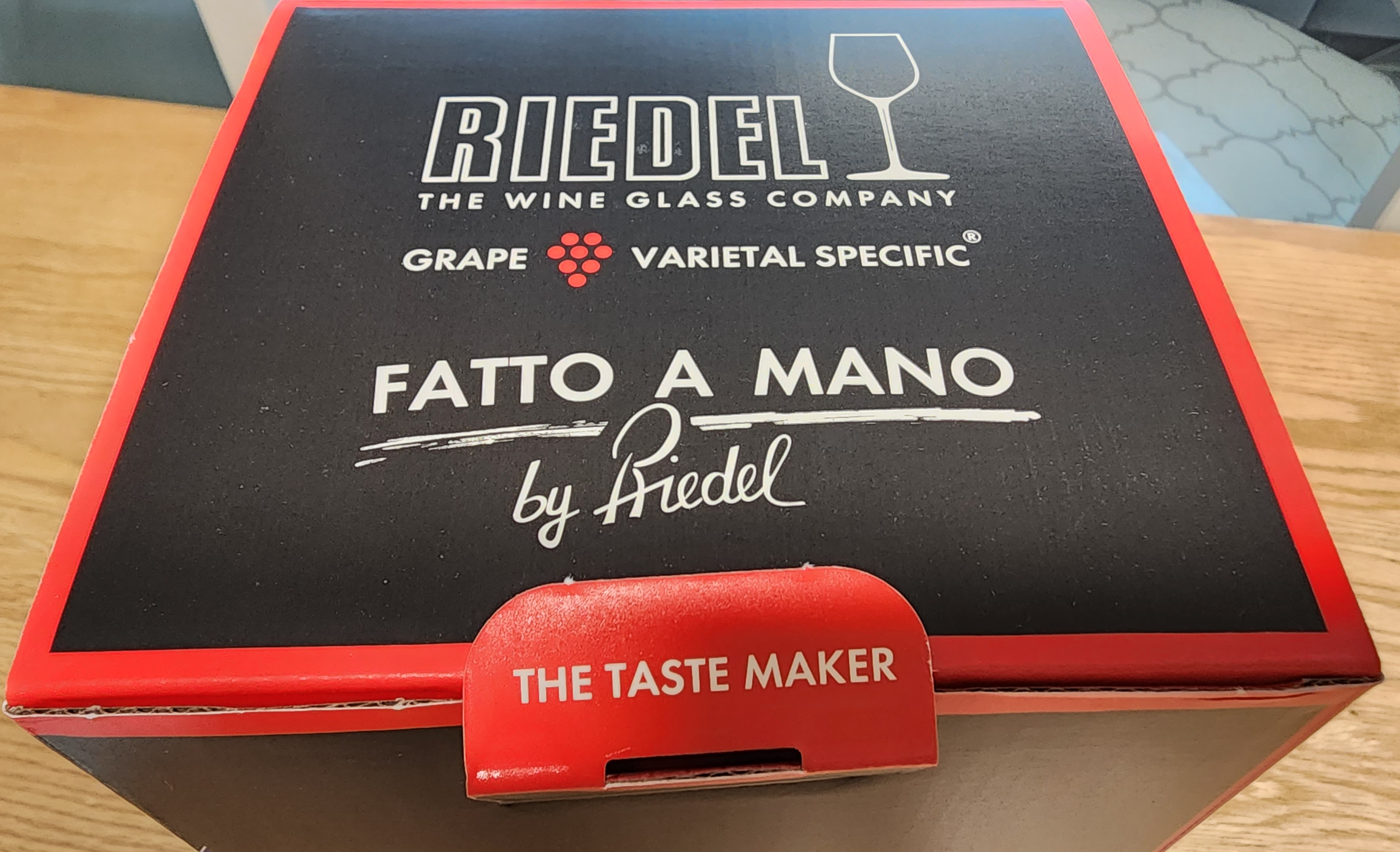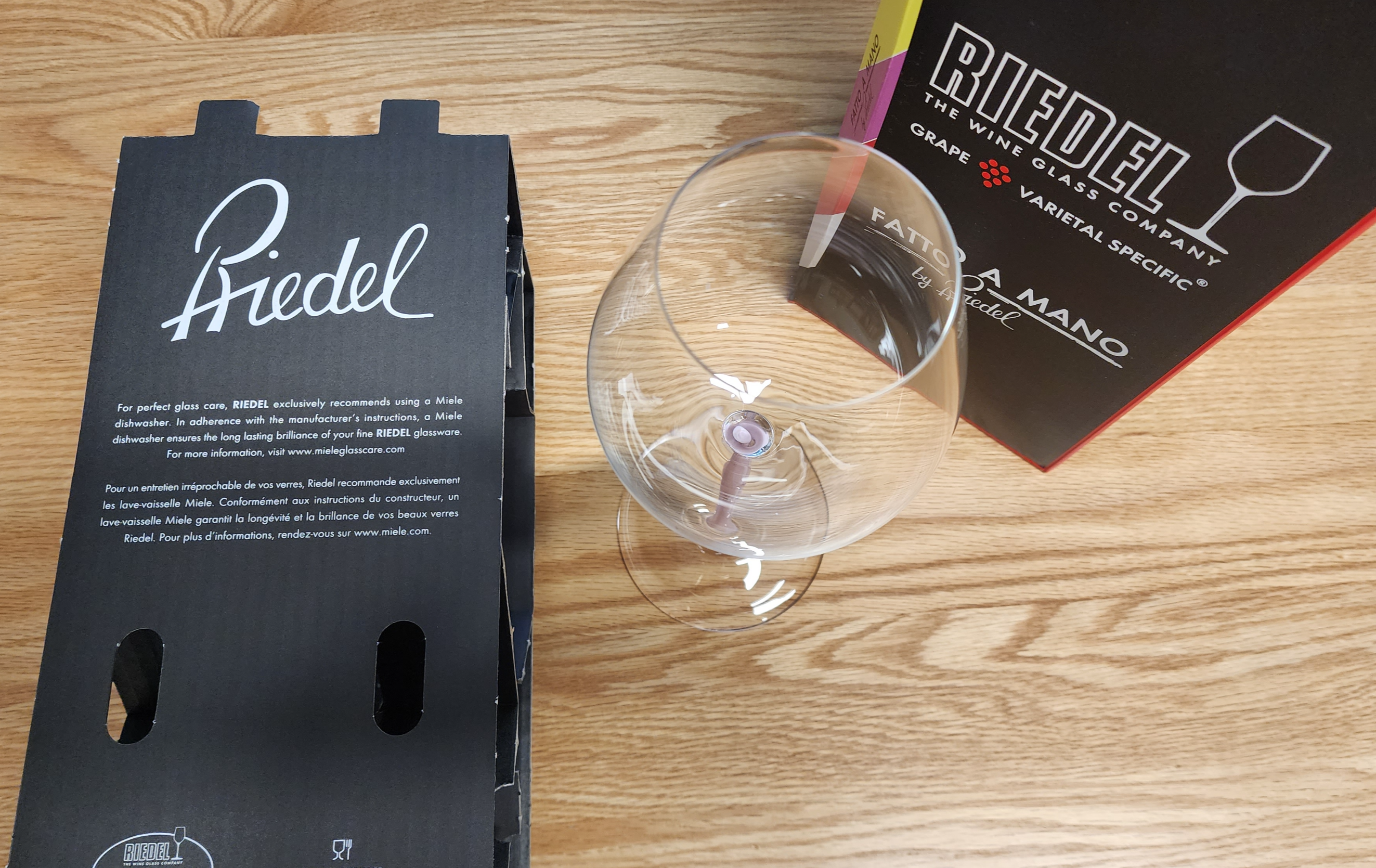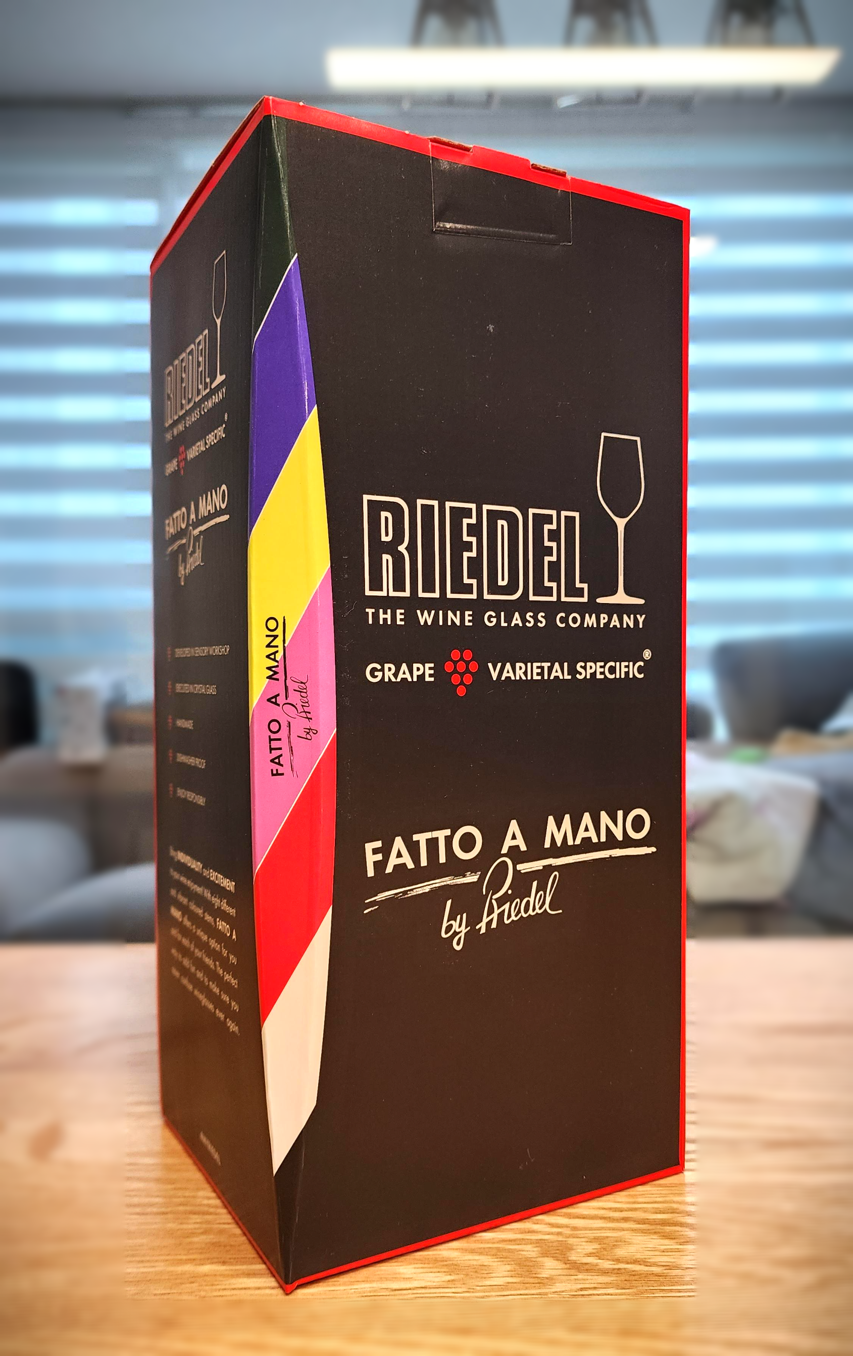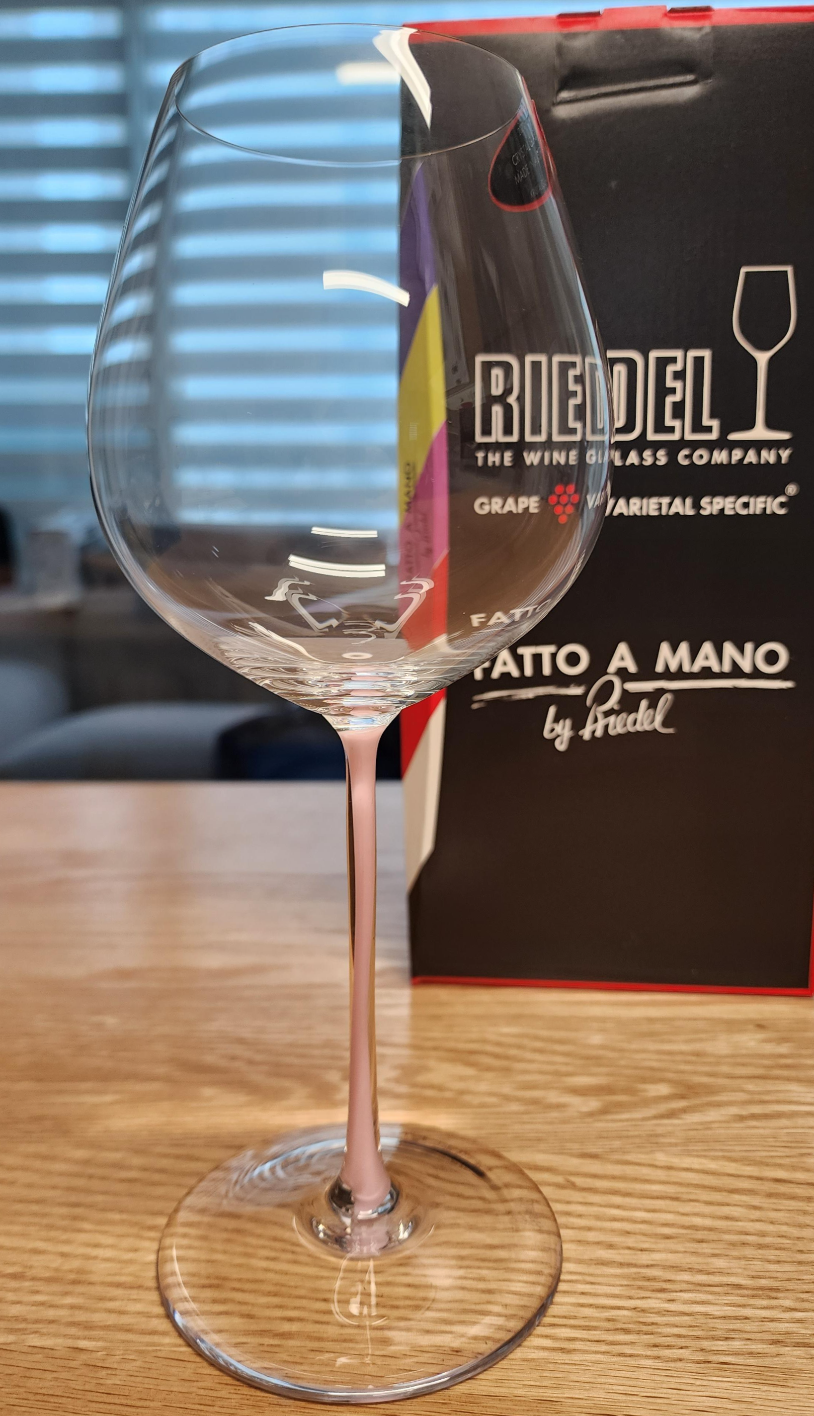 애정하는 후배에게 받은 선물, 리델 파토마노 올드 월드 피노 누아 글라스(FATTO A MANO by Riedel Old World Pinot Noir Pink). 파토 아 마노는 이탈리아어로 핸드메이드라는 뜻이다.