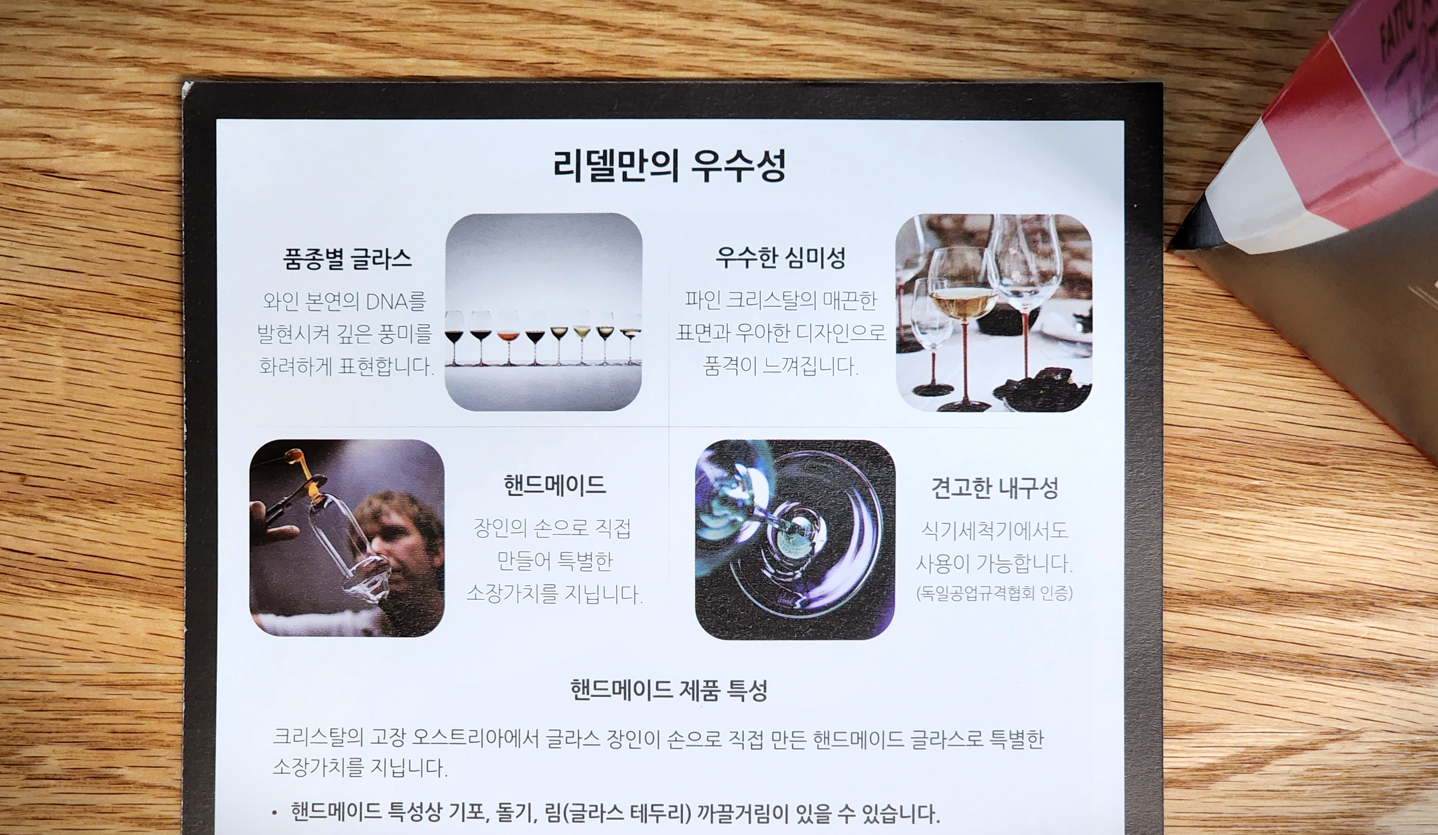 리델은 품종 별로 너무 많은 잔을 사게 만들어서 부담스럽지만, 그런 만큼 다양한 경험을 하게 만들어 주는 부분은 인정할 수밖에 없다.