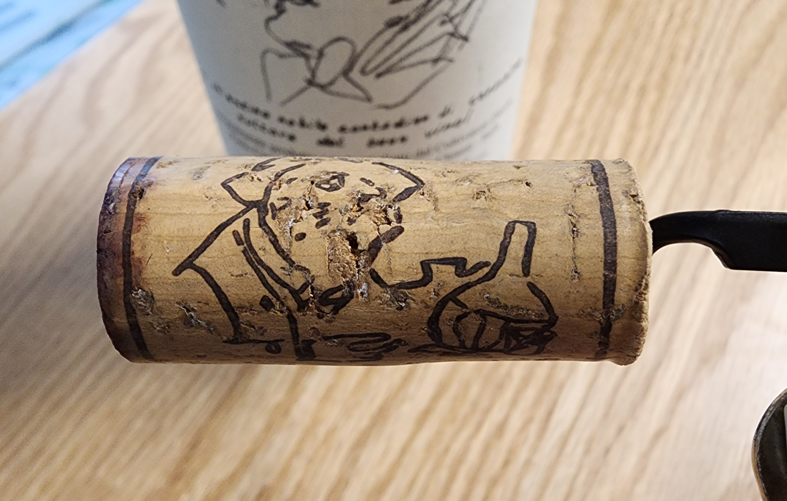코르크에는 전통적인 키안티의 와인병인 플라스코를 들고 있는 아저씨가 그려져 있다. 요 그림은 키안티 클라시코 리제르바 와인의 레이블에도 사용된 그림이다.
