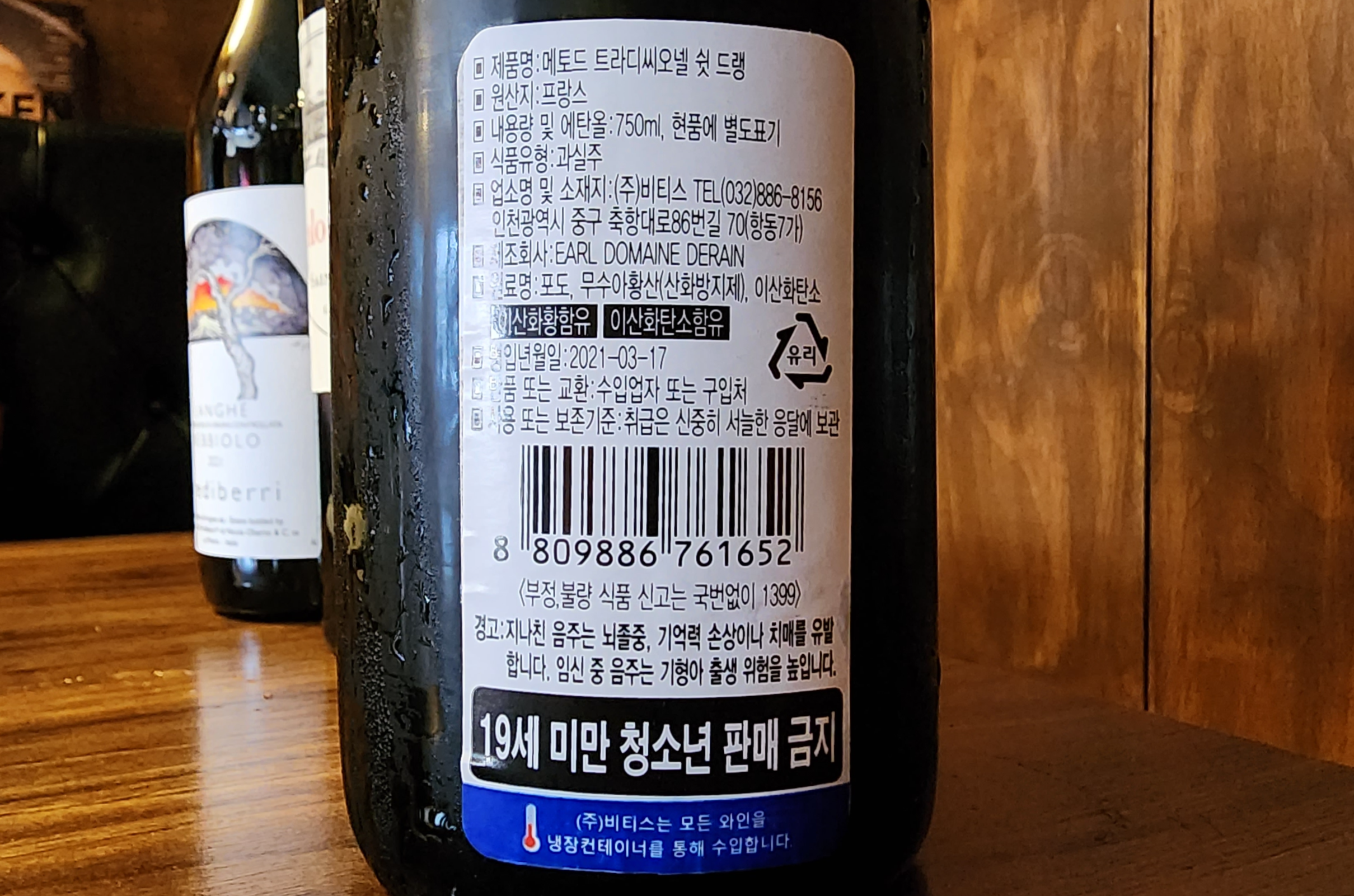 조금 늦게 도착한 첫 병. Chut... Derain, Methode Traditionnelle Brut Nature. 자연스러운 뉘앙스에 은은한 이스티함이 편안하게 드러난다. 입에 넣으면 완숙한 사과, 자두, 모과 뉘앙스. 온도가 조금 낮아지니 백도, 서양배 같이 산뜻하고 깔끔한 흼 과일 풍미가 예쁘게 드러났다. 편하게 마시기 좋은 스파클러. 검색해 보니 알리고테(Aligote) 100%로 만든 것 같다.
