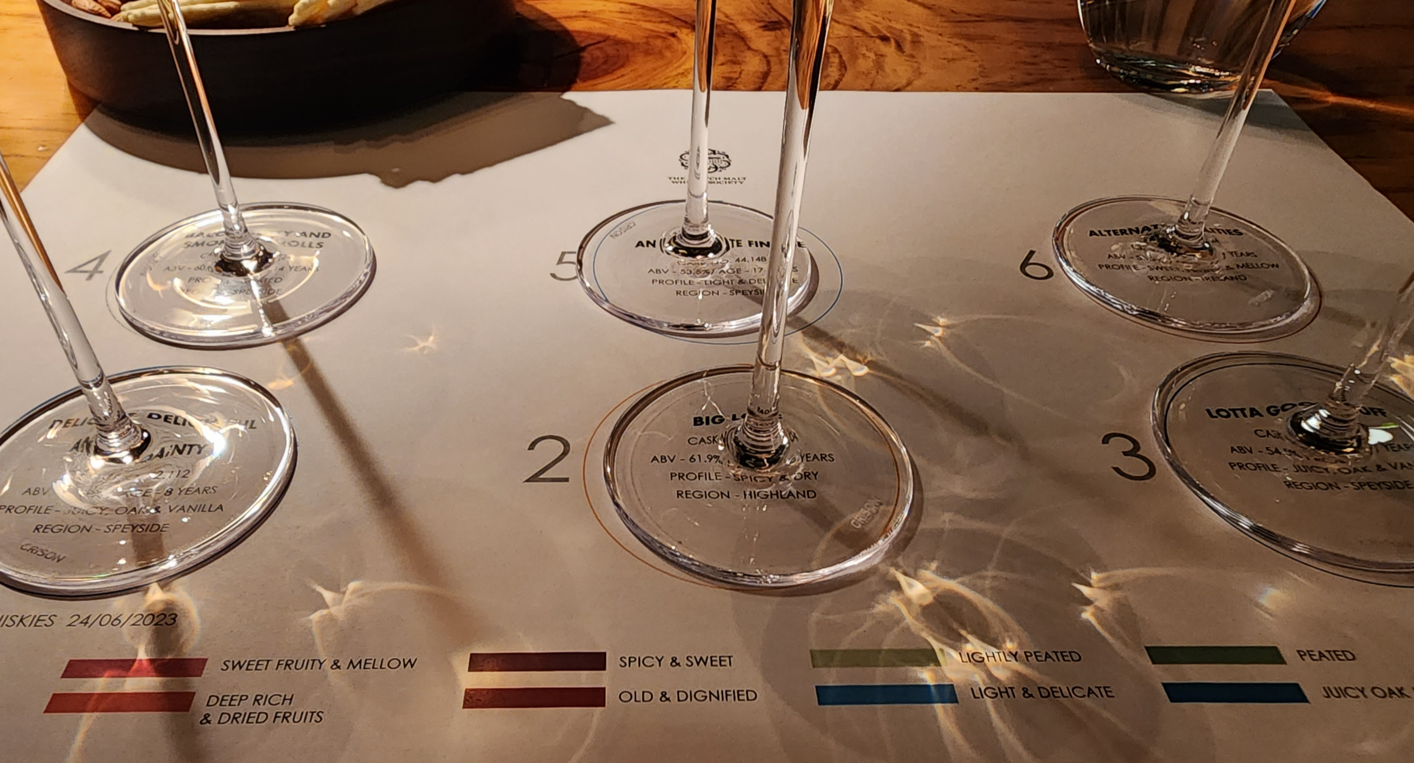 한국 SMWS 전용 글라스에 세팅된 위스키들. 요 글라스 전용 케이스도 함께 있으면 좋겠다. 들고 다니며 사용하게.