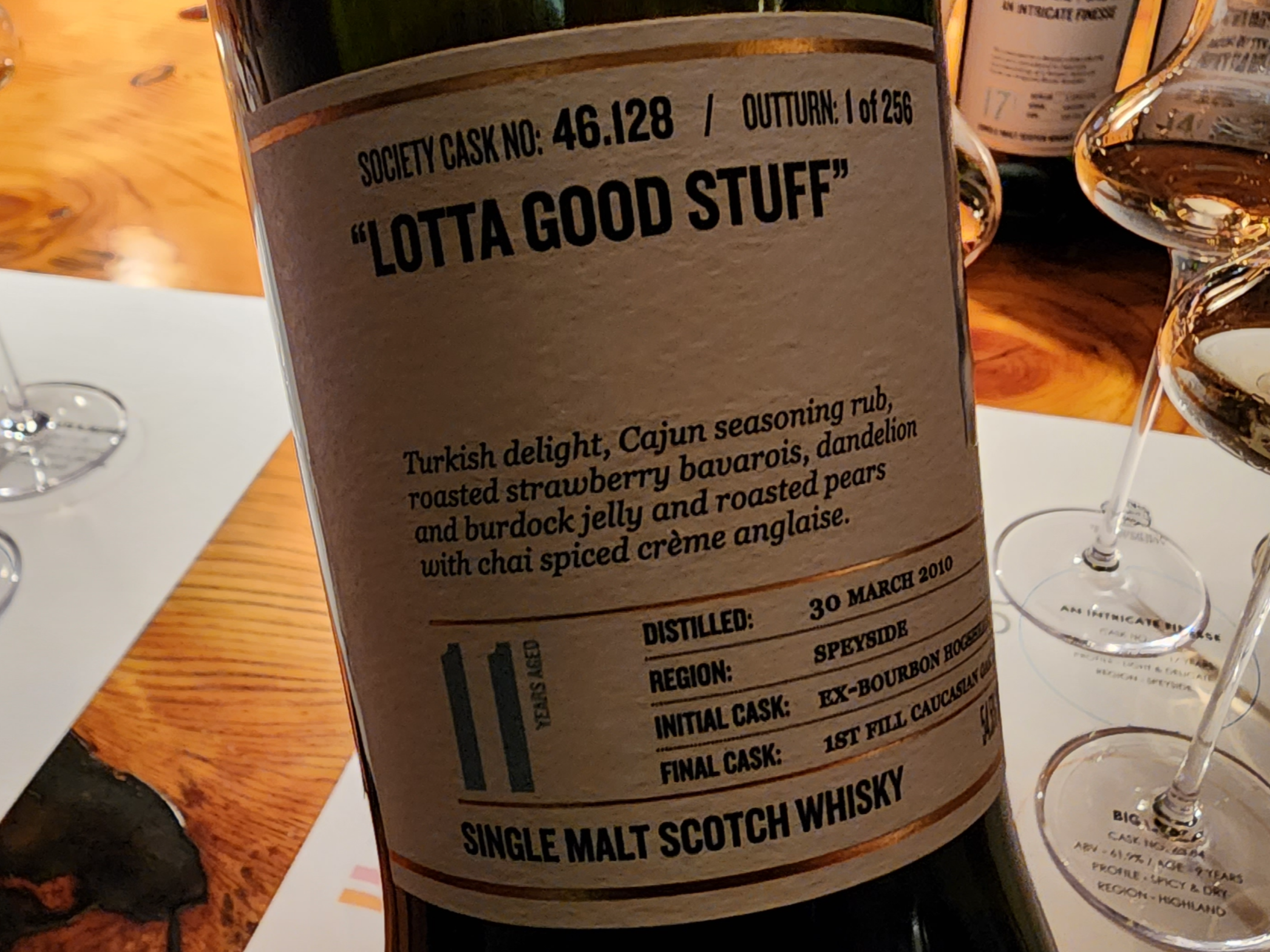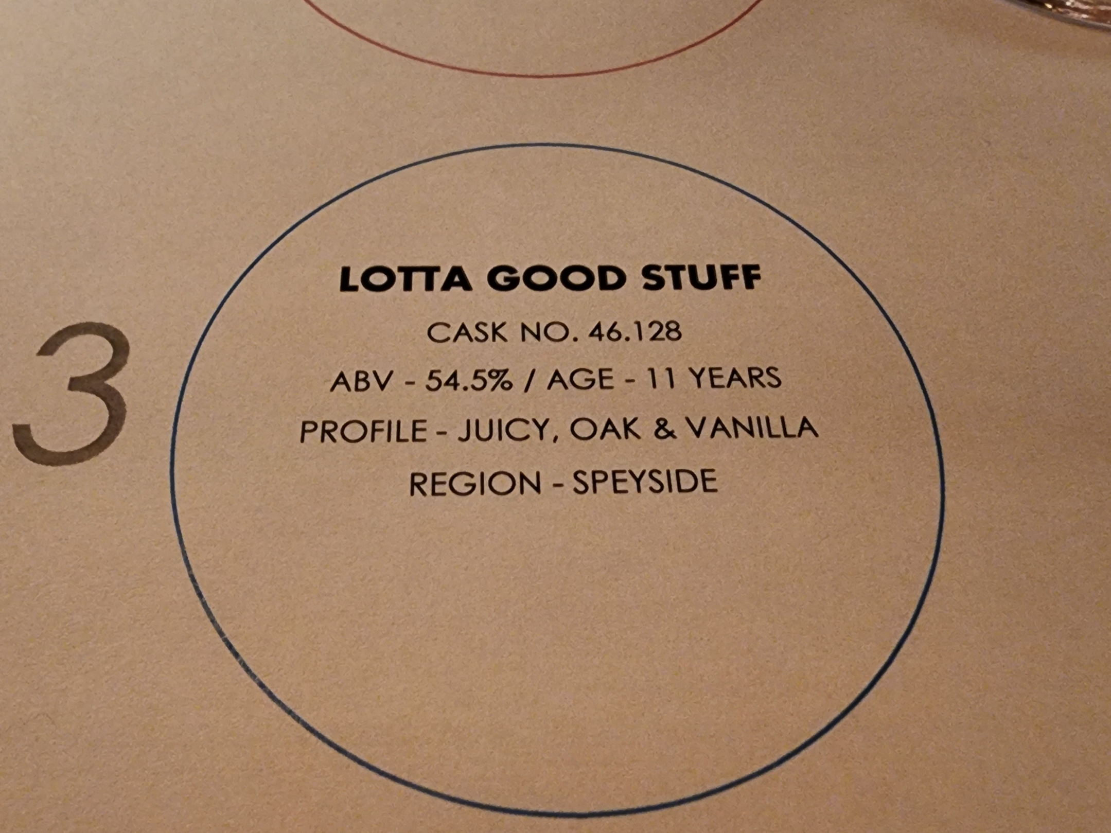 3번, LOTTA GOOD STUFF(46.128). 알코올 54.5%, 11년 숙성, Speyside, juicy, oak & vanilla.
