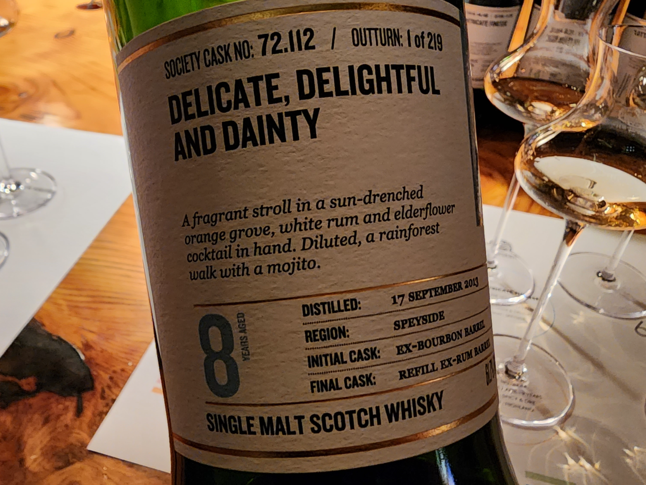 1번, DELICATE, DELIGHTFUL AND DAINTY(72.112). 알코올 61.7%, 8년 숙성, Speyside, juicy, oak & vanilla.