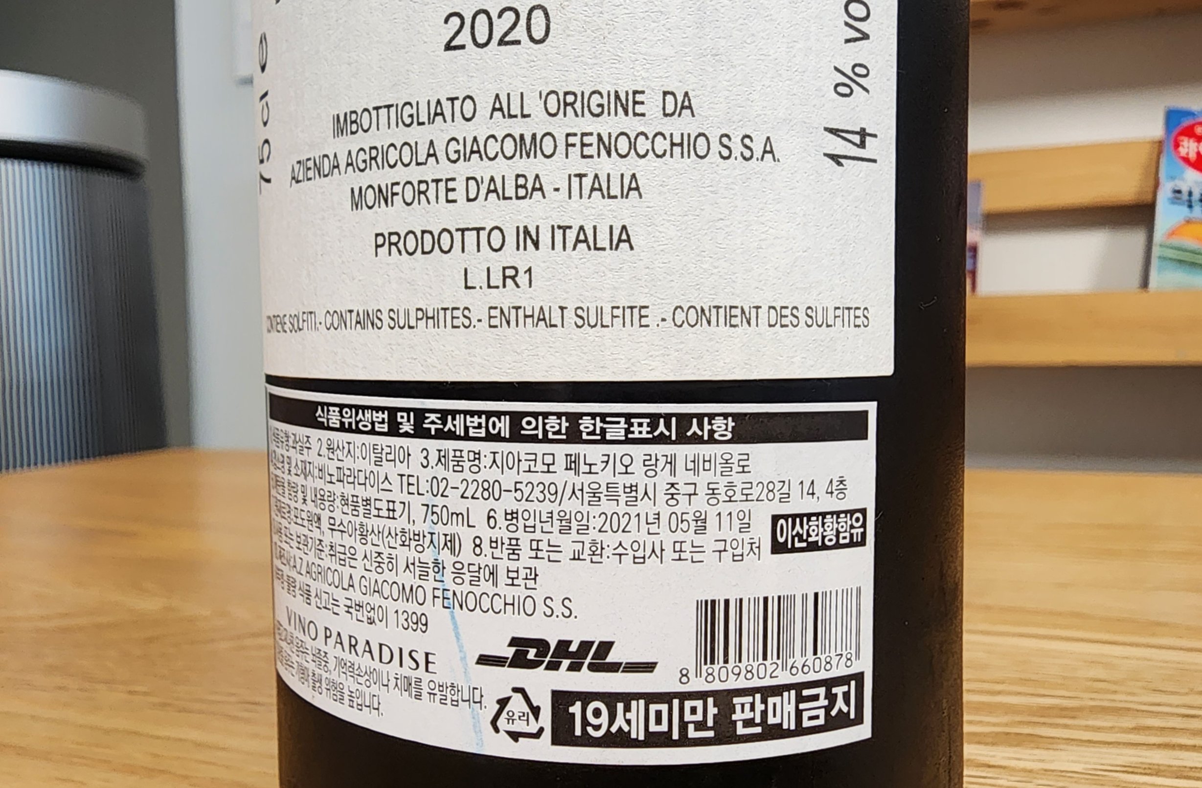 그런데 이상한 점이 있다. 레이블에는 분명 2019년 빈티지로 적혀 있는데,