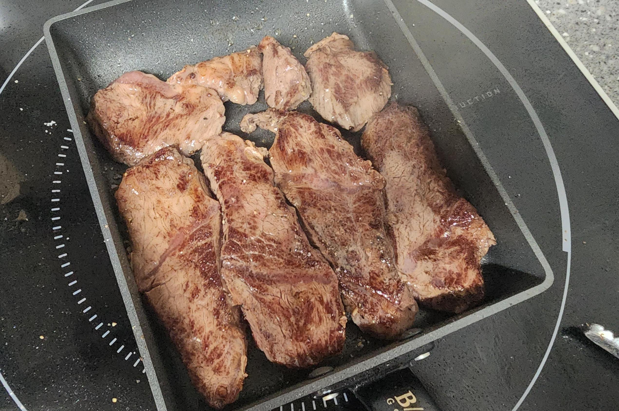 크리스피하게 구운 토시살. 후추를 듬뿍 친 후 구운 마늘과 곁들였더니 와인 안주로 제격이다.