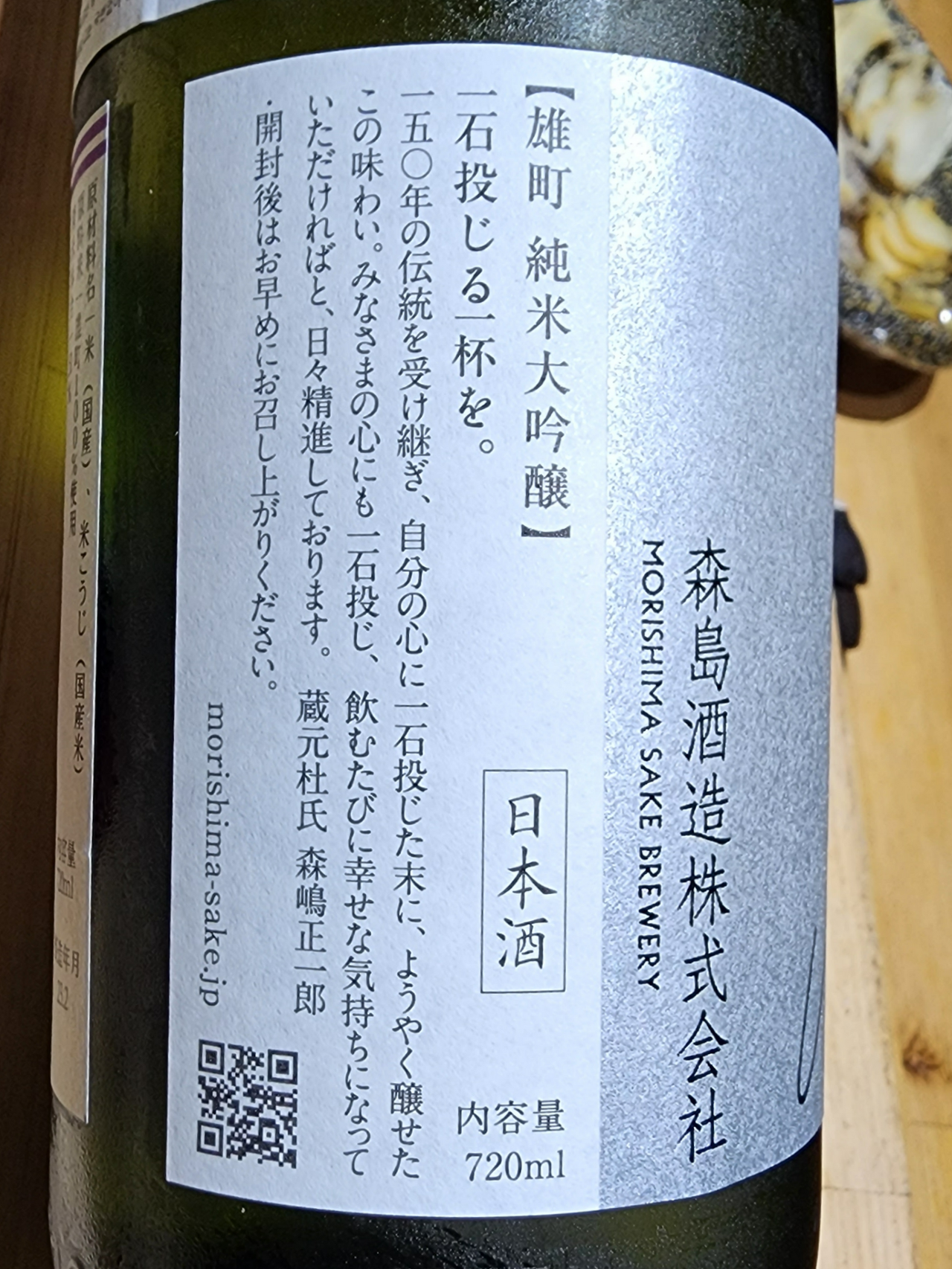 모리시마 오마치 준마이다이긴조 나마자케(森嶋 雄町 純米大吟釀 生酒).