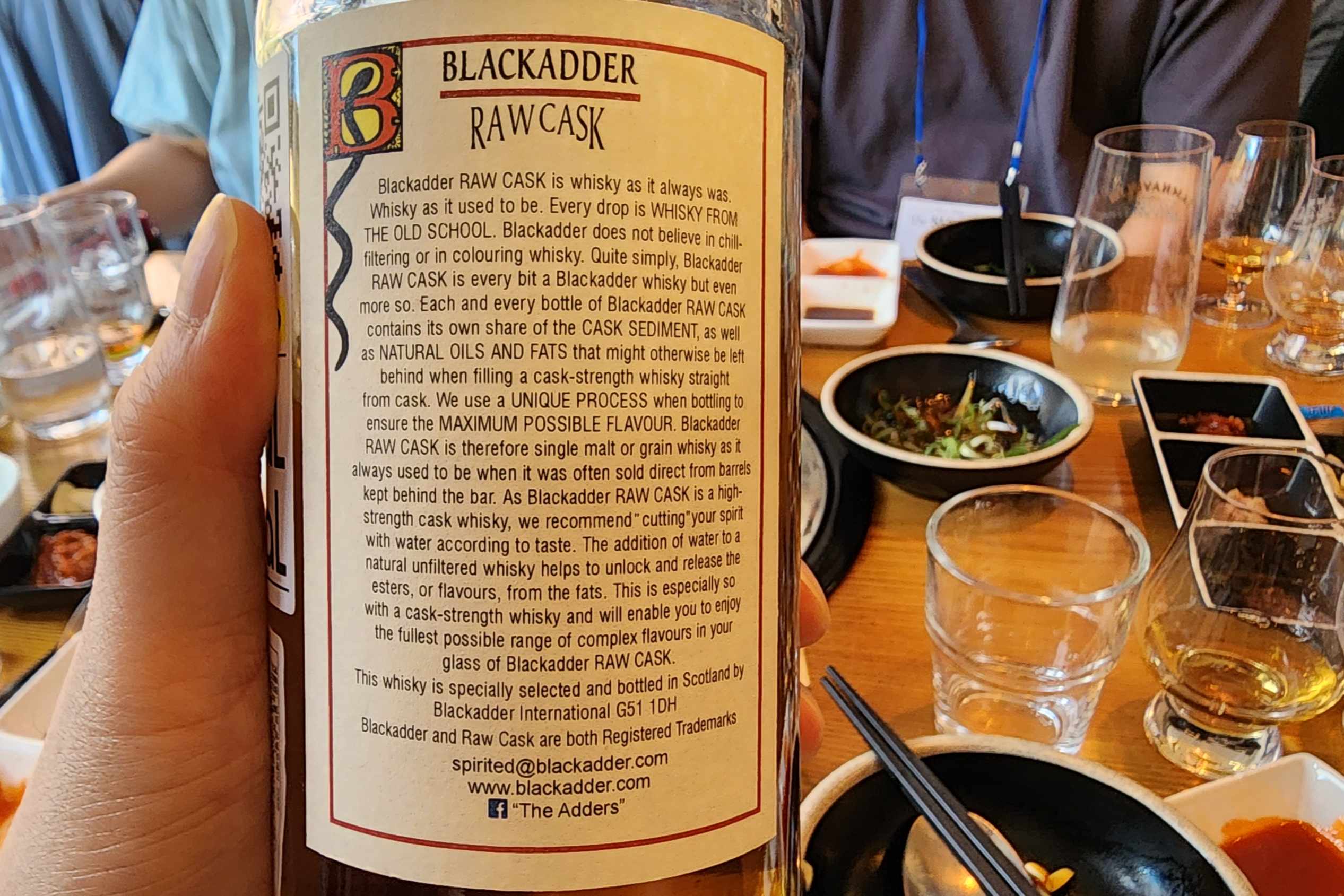 Blackadder, Raw Cask Glen Moray 2008 13 yo. 꽃, 과일, 스파이스 풍미의 밸런스가 완벽한 느낌. 입에 넣으면 피트와 삼나무 힌트가 가볍게 더해진다. 취한 상황이었는데도 상당히 맛있었던 기억.