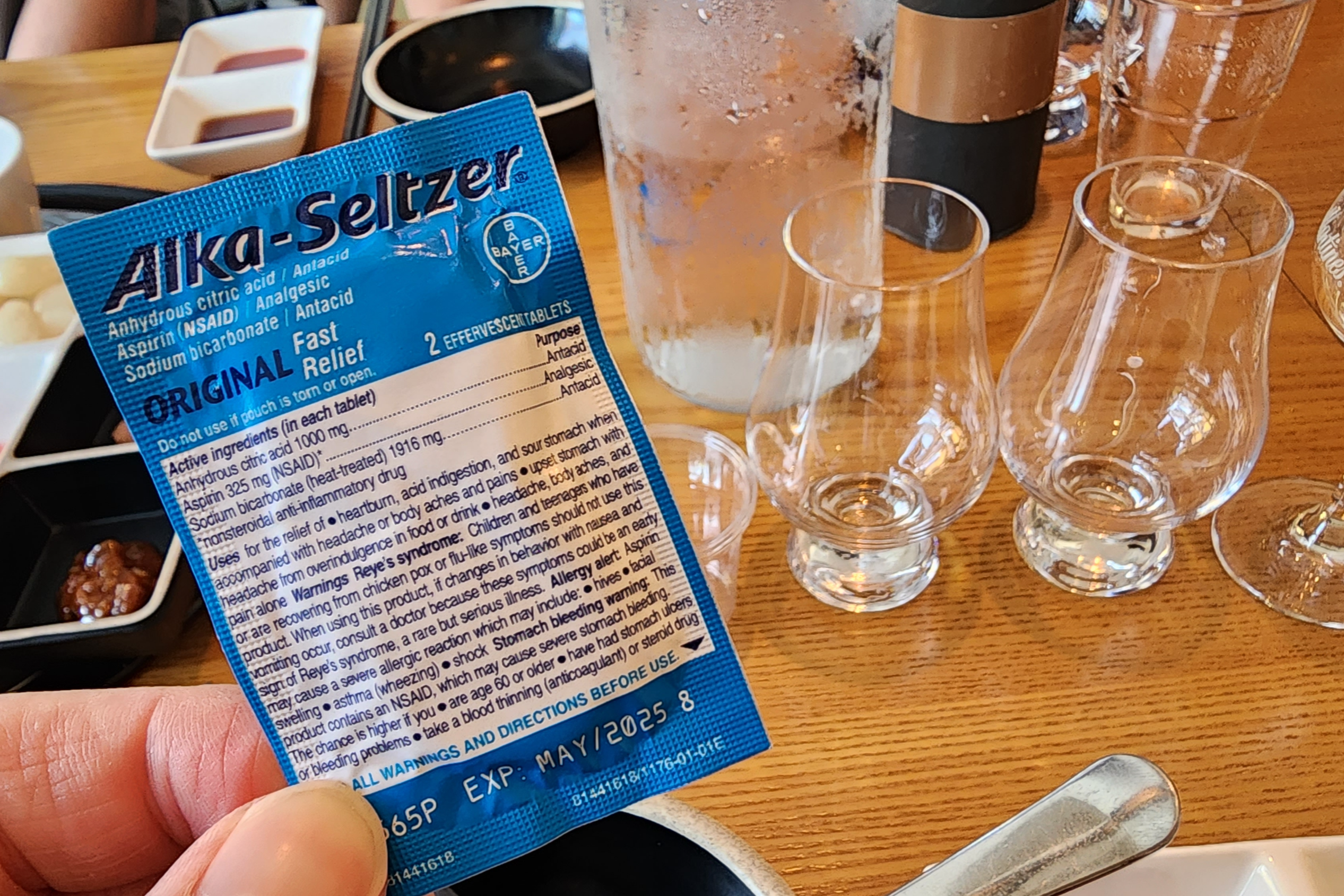 같은 테이블에 앉은 귀인께서 주신 소화제 겸 숙취 해소제, Alka-Seltzer.
