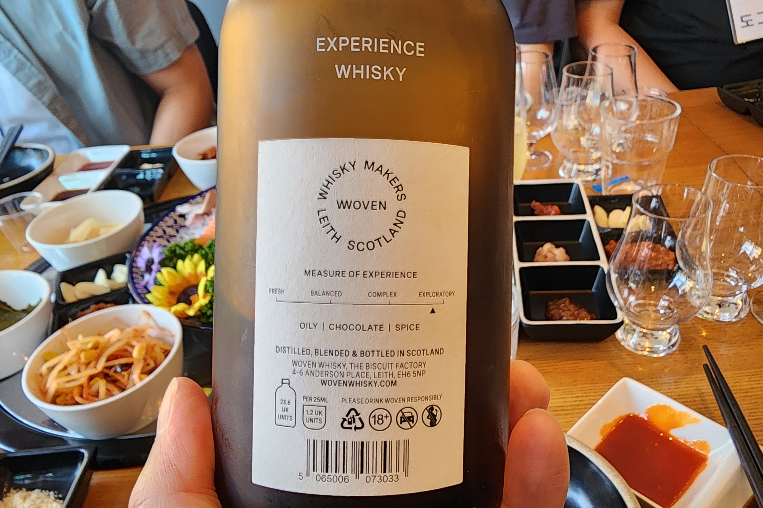 Woven, Experience N.13 Catalyst. 컬러는 유사한데 조금 짙은 느낌. 코를 대는 순간 스모크 치즈 같은 meaty함과 구수한 뉘앙스가 느껴진다. 자키자키 같기도 하고... 가벼운 피티함과 입안에서 유질감, 바디감이 느껴진다. 살짝 거칠지만 매력적인 느낌.