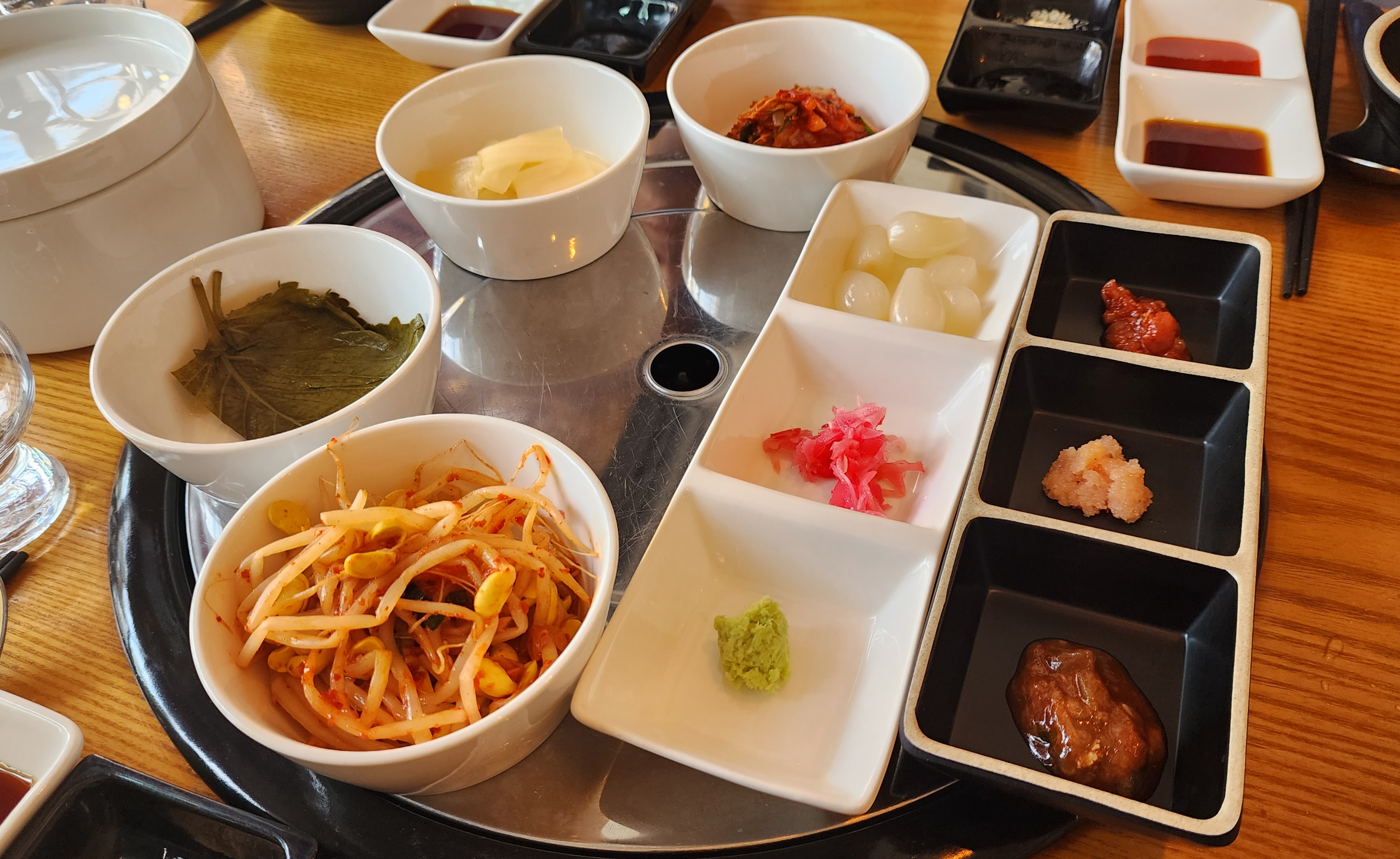 밑반찬. 정갈한 타입인데 쓸데없는 것 싸악 빼고 메인 요리와도 잘 어울리는 것들로 구성돼 있다.