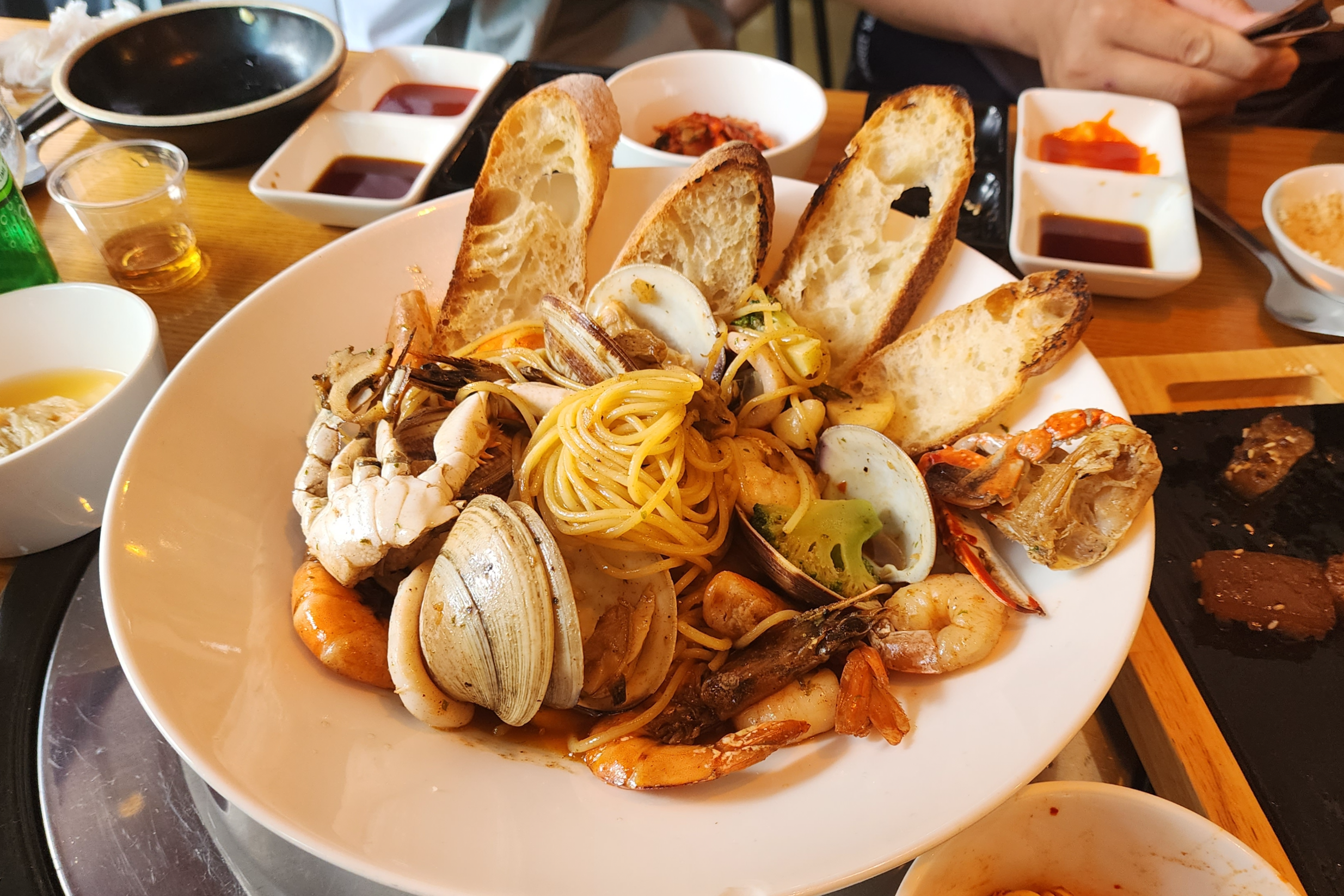 모임장소인 산토스틸라는 숙성회 등 해산물과 삼겹살 등 육류 구이를 함께 즐길 수 있는 곳이다. 오마카세 스타일로 주문할 수도 있다. 게다가 콜키지 프리! 술꾼에게는 최적의 장소다.