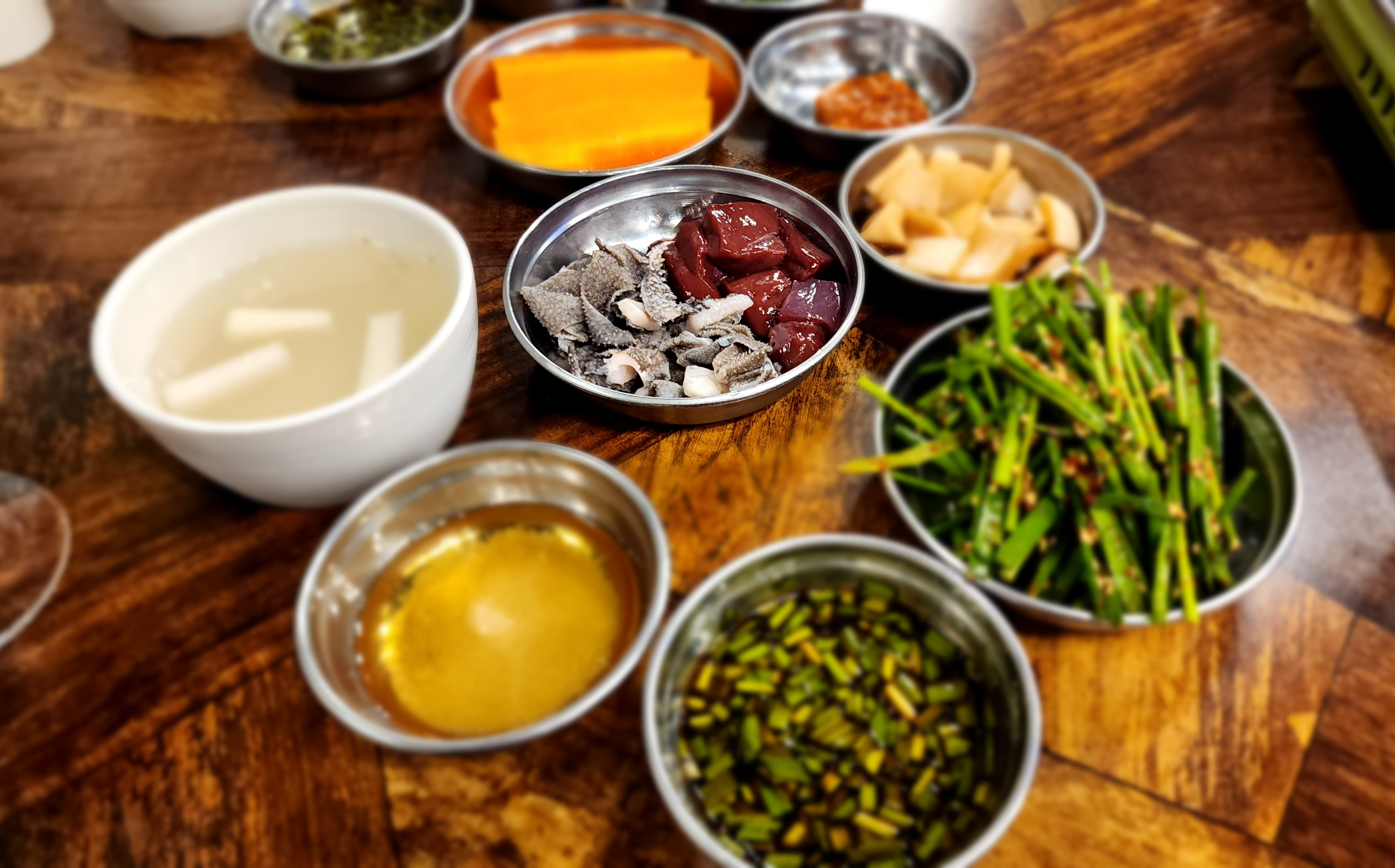 간의 피맛과 천엽의 꼬들꼬들 담백한 맛과도 무난히 어울린다.