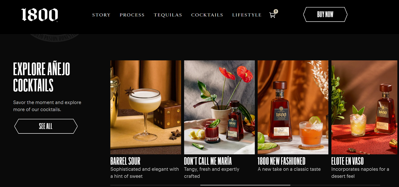 홈페이지에서 1800 아네호로 만들 수 있는 칵테일도 소개하고 있다. 근데 재료가 넘나 많이 들어가는 것...