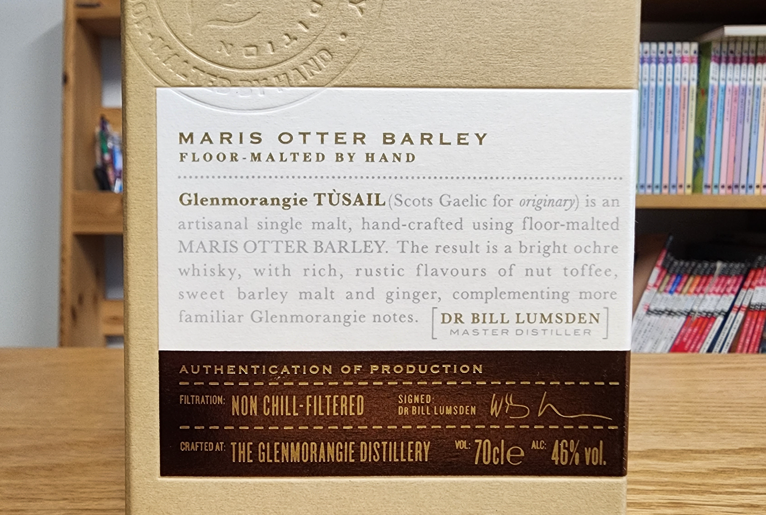 투세일은 게일 어로 근본/원점(originary)라는 의미라고. 알코올 함량은 46%. 칠 필터링을 하지 않았다(Non Chill-filtered).