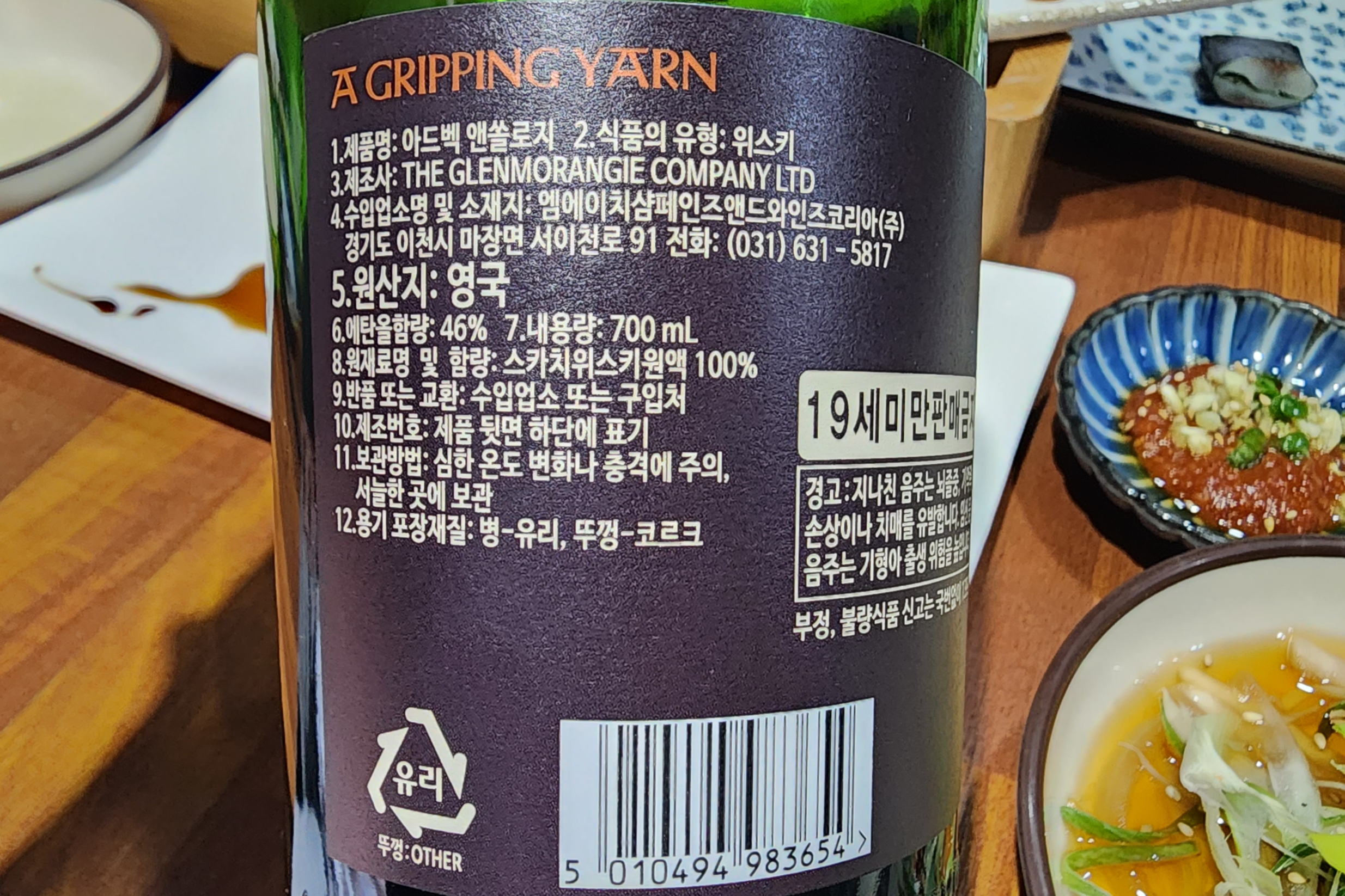 소테른 캐스크와 전형적인 익스 버번 캐스크에서 숙성한 아드벡을 매링(marrying) 해서 만든 거라고 해서 상당히 기대를 했는데, 글쎄... 조금 당황스러웠다. 사려다 실패한 게 외려 다행이랄까. 맛을 본 것으로 만족.