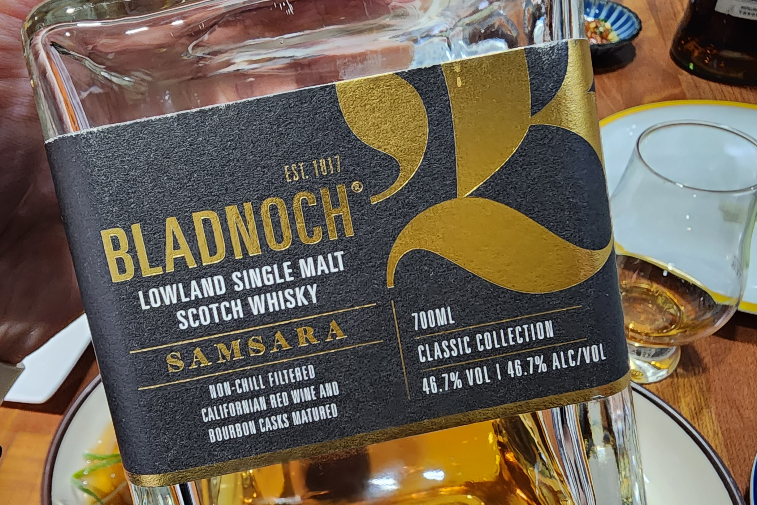 Bladnoch, Samsara. 완숙 핵과, 시큼한 레드 베리, 톡 쏘는 스파이스, 이국적인 꽃술 뉘앙스. 입에서는 뭔가 오묘한 뉘앙스가 있는데 어란 땜에 강하게 느끼진 못했고, 바디 자체는 산뜻하고 가벼운 편.