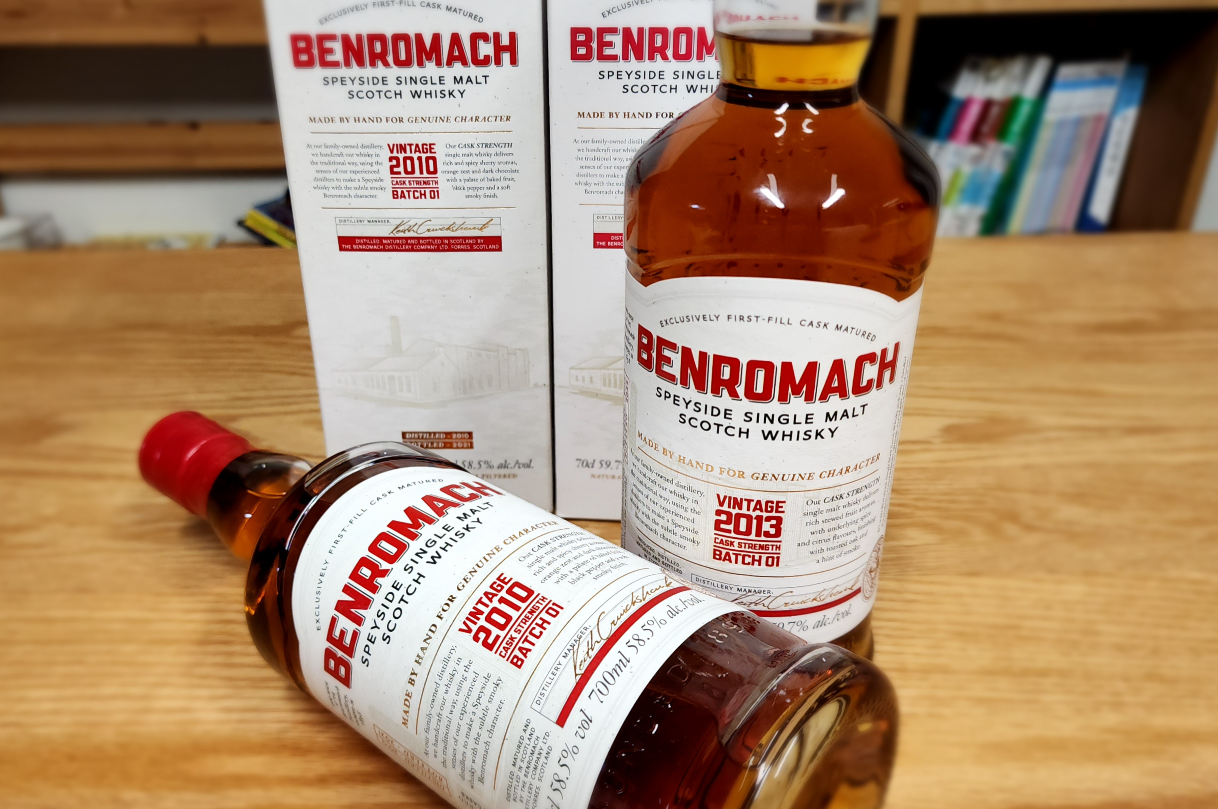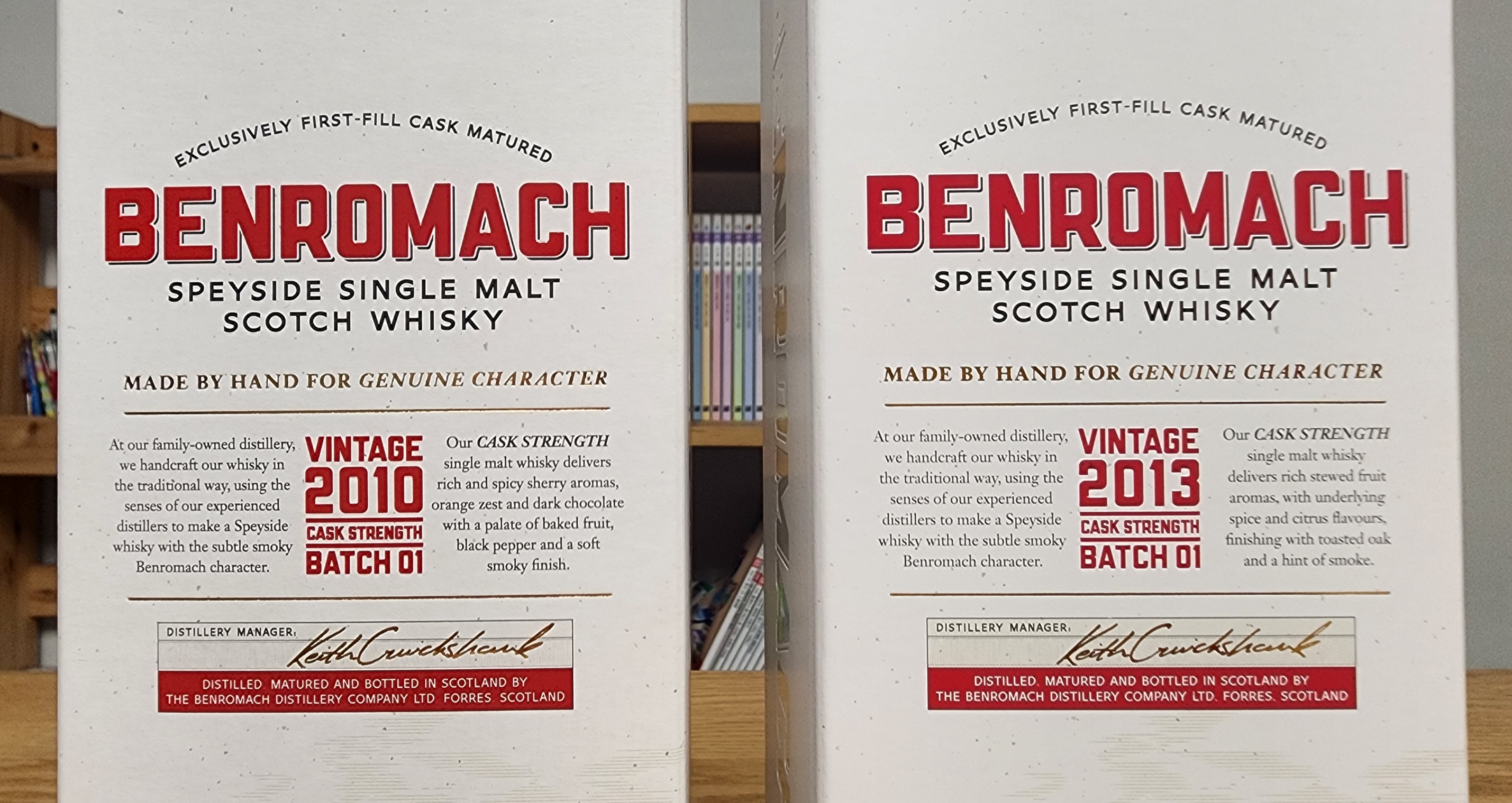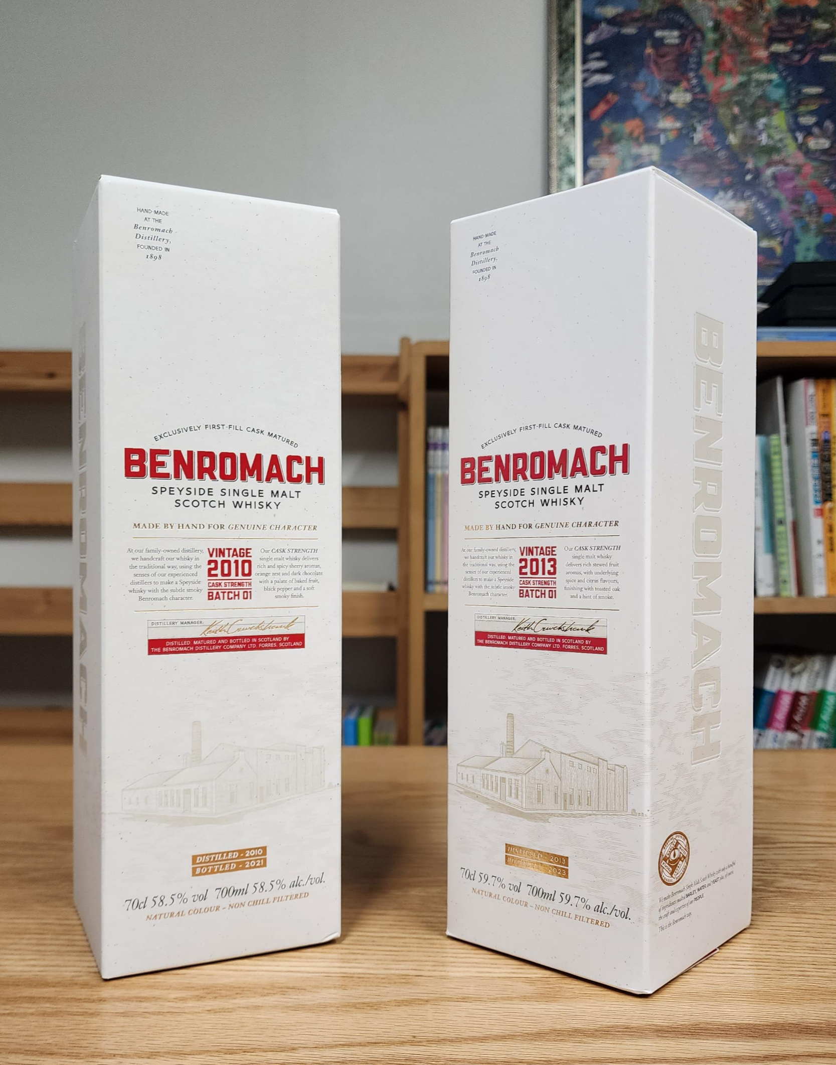 벤로막 빈티지 2010(Benromach Vintage 2010) & 벤로막 빈티지 2013(Benromach Vintage 2010). 둘 다 캐스크 스트렝쓰(Cask Strength)이고 배치 1(Batch 1)이다. 2010년 빈티지는 작년에 사 두었던 건데, 이번에 2013년을 산 김에 같이 포스팅. 이렇게 같은 시리즈의 아이 빈티지를 나란히 보유하게 되었다.