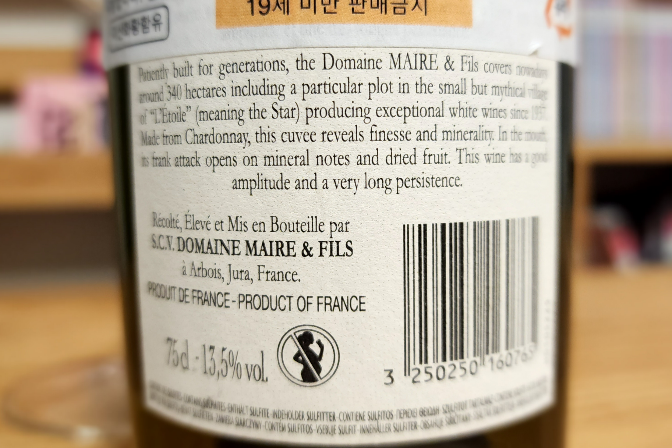 도멘 메흐 에 피스(Domaine Maire & Fils)는 1600년대부터 300년 넘게 와인을 만들어 온 메흐 가문이 소유한 와이너리다. 백 레이블을 보면 보유한 포도밭 면적이 340 헥타르에 이른다고. 포도밭이 넓지 않고 소규모 생산자가 많은 쥐라에서 저 정도면 면적으로는 거의 탑이 아닐까 싶은데.