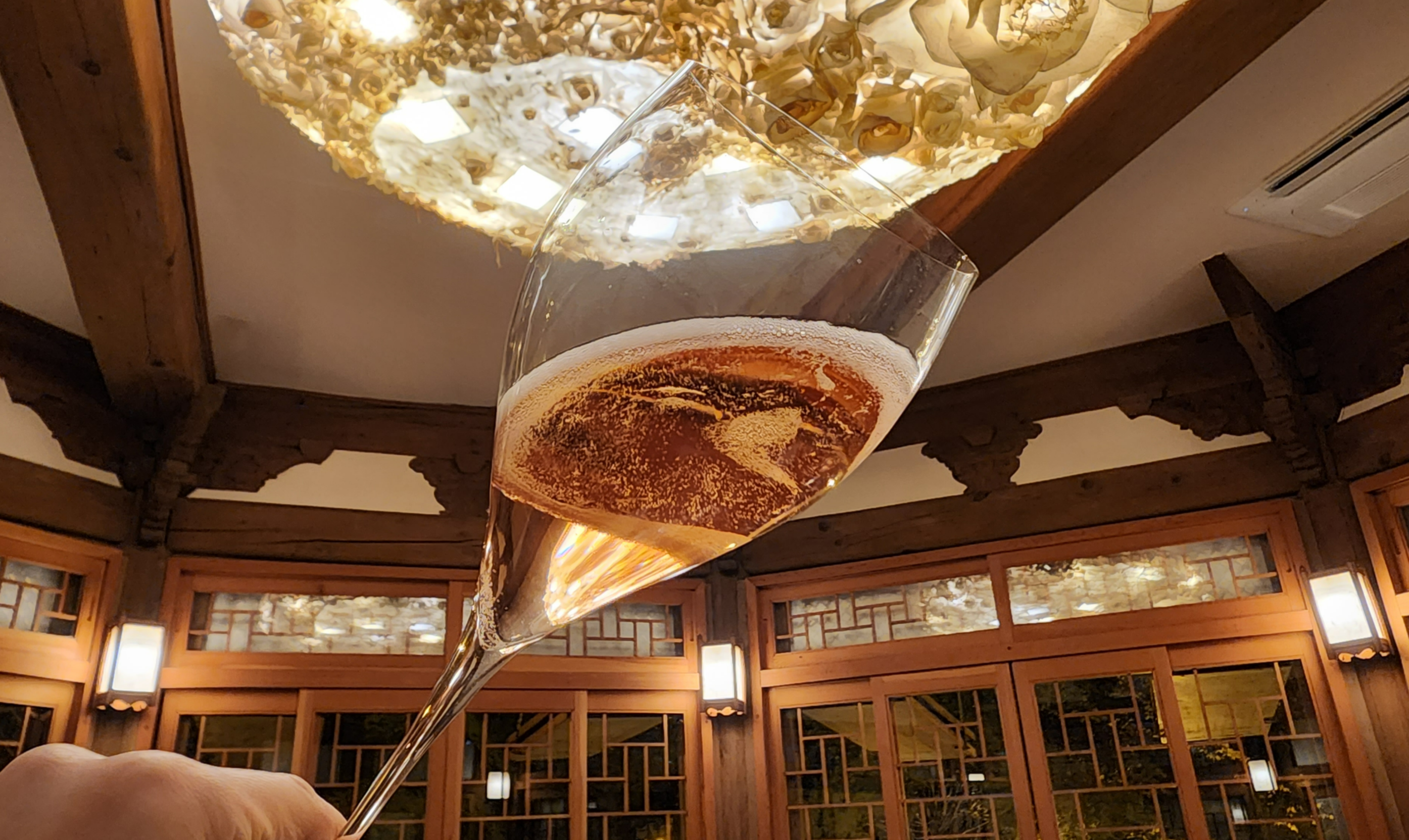 장밋빛 감도는 살몬 핑크 컬러에 샤르마 방식으로 만든 것이라고는 믿어지지 않는 조밀하고 섬세한 기포가 지속적으로 피어오른다. 코를 대면 딸기, 체리 같은 붉은 과일 향기 예쁘게 드러나며, 입에서는 적절한 신맛과 함께 세이버리 한 여운이 가볍게 남는다. 정말 매력적인 스파클러. 게다가 심포니 글라스와 만나 장점이 극대화되는 느낌이다.