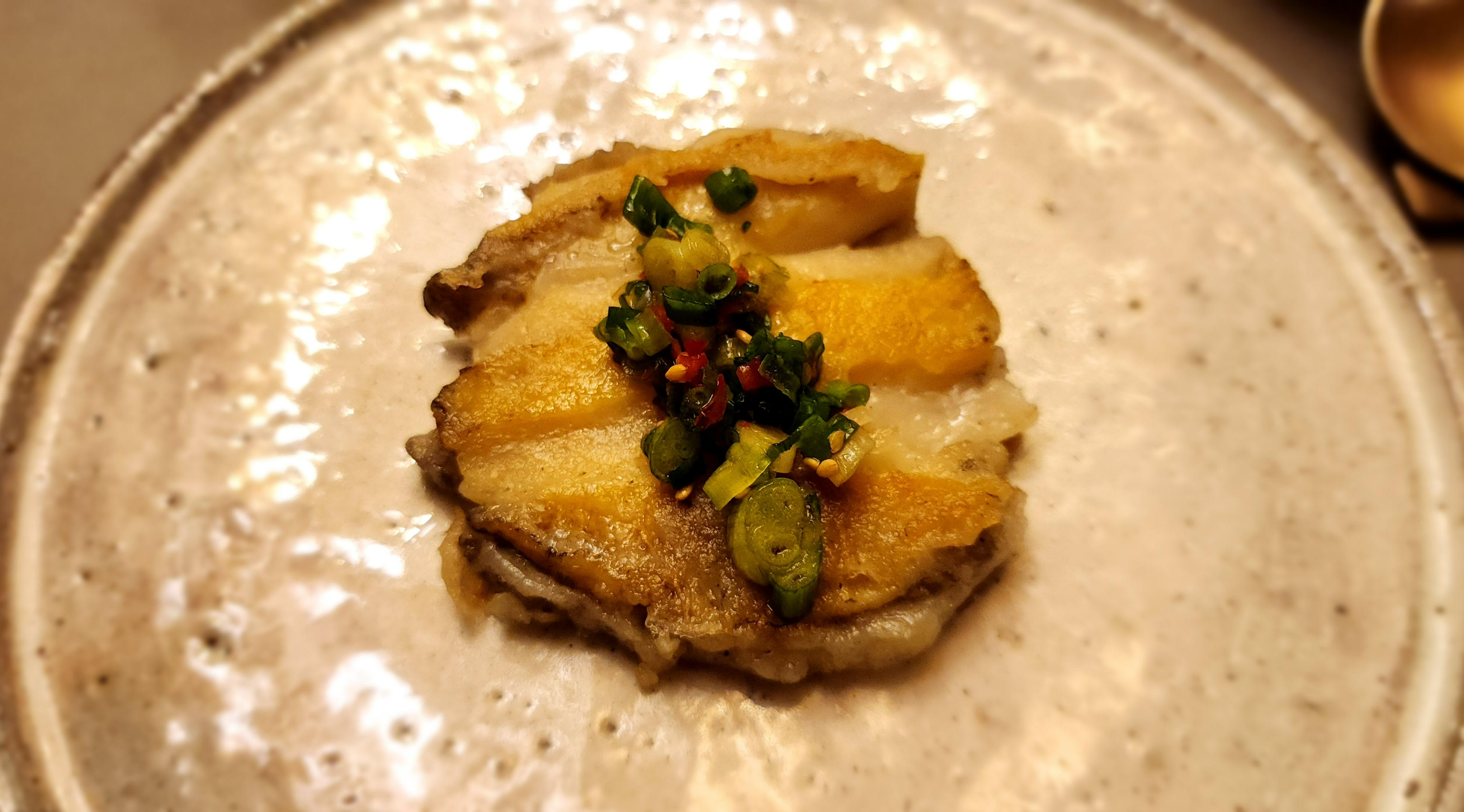 된장 소스를 곁들인 금태구이. 전복이나 금태 같은 해산물들도 키안티 클라시코 와인들과 아주 잘 어울렸다. 오크 숙성을 하지 않거나 오크를 가볍게 사용한 키안티 클라시코 와인들은 푸드 페어링에서 강점을 발휘하는 경우가 많다.