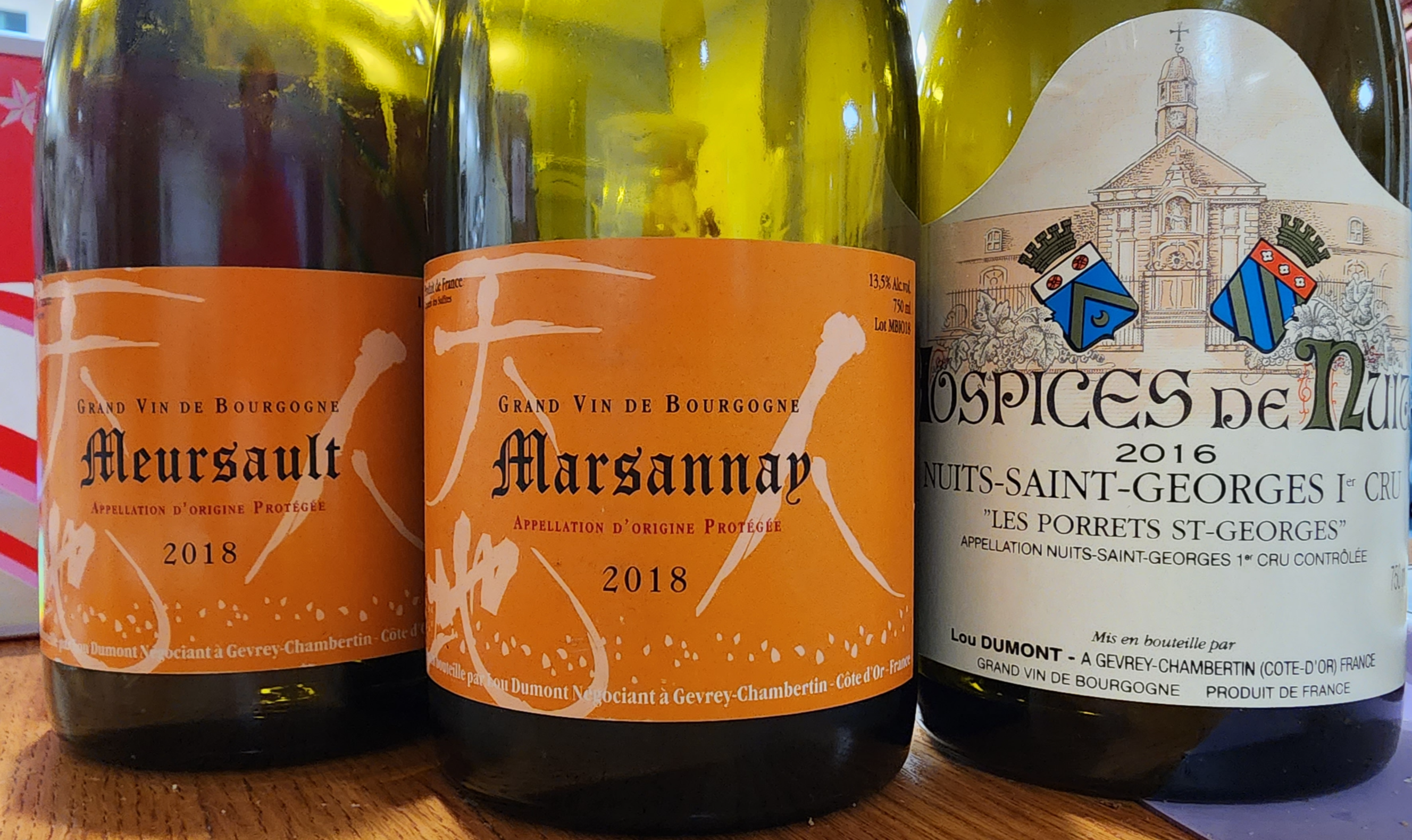 먼저 Lou Dumont, Meursault 2018. 완숙한 핵과, 열대과일 같은 풍미에 버터리 & 너티 뉘앙스, 그리고 산화 힌트. 빈티지에 비해 살짝 과숙된 느낌이지만 음식과 함께 마시기 좋았다.