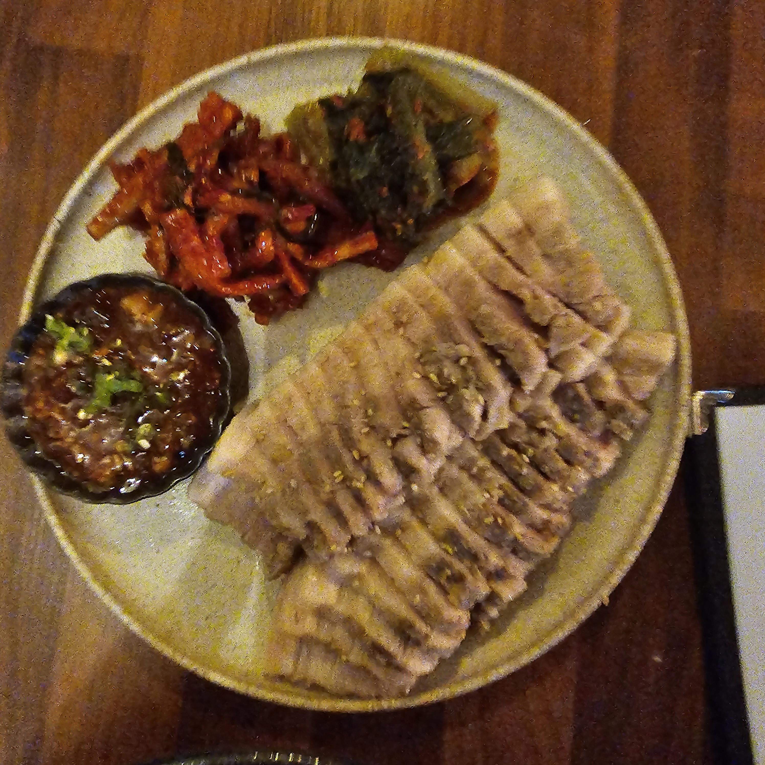 수육 우설 반반. 같이 나오는 콩비지도 거의 메인처럼 훌륭하다.