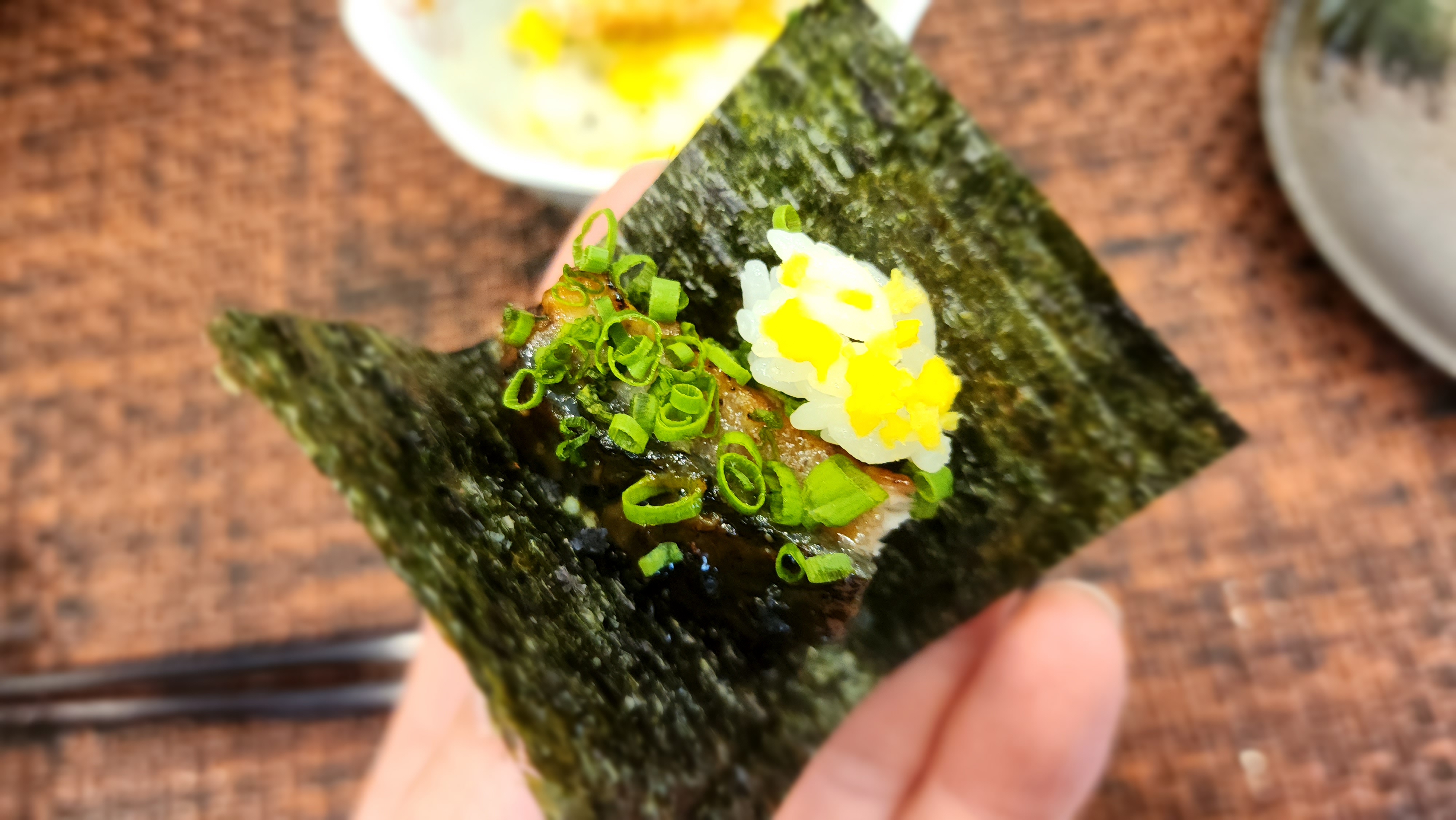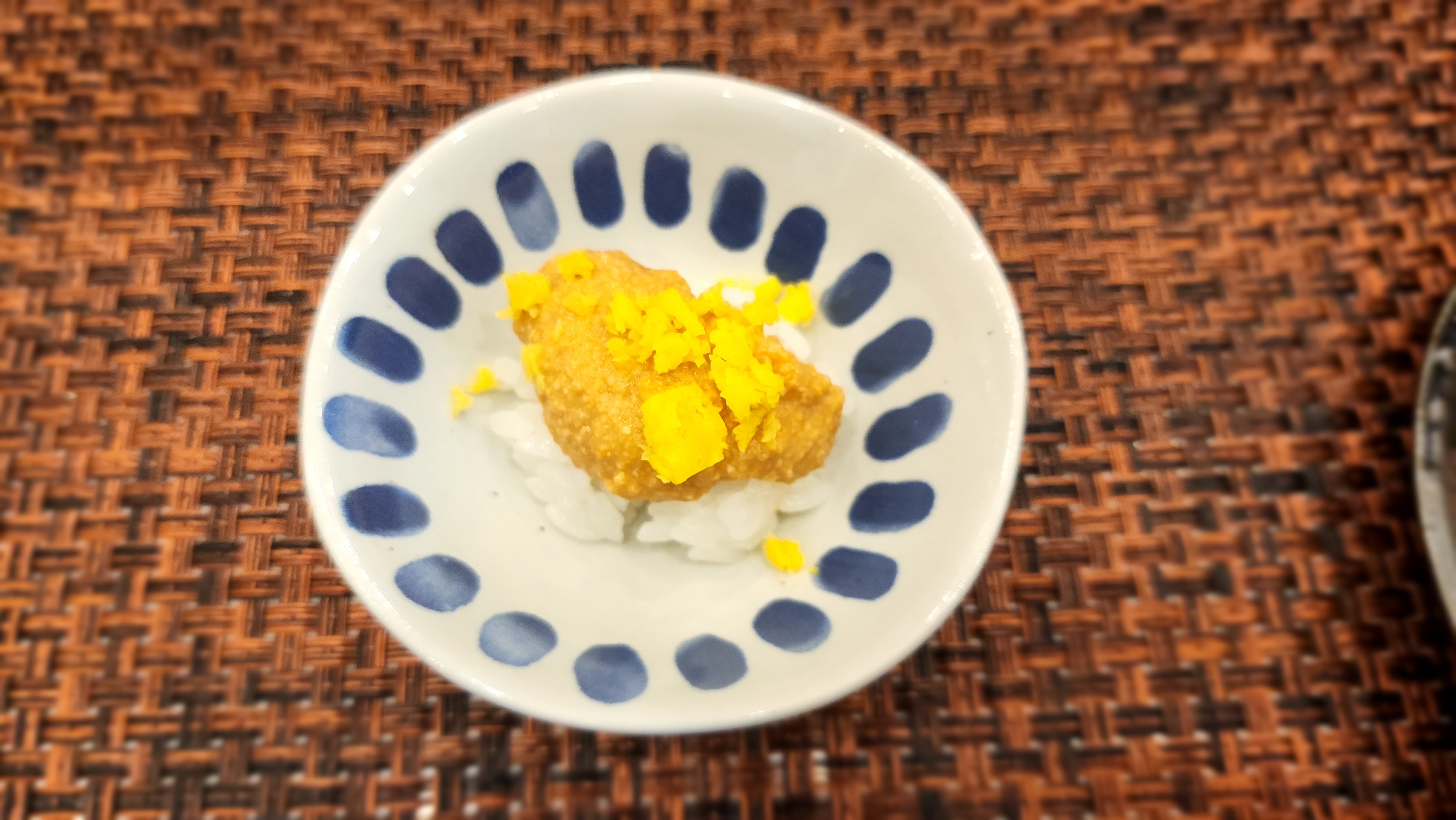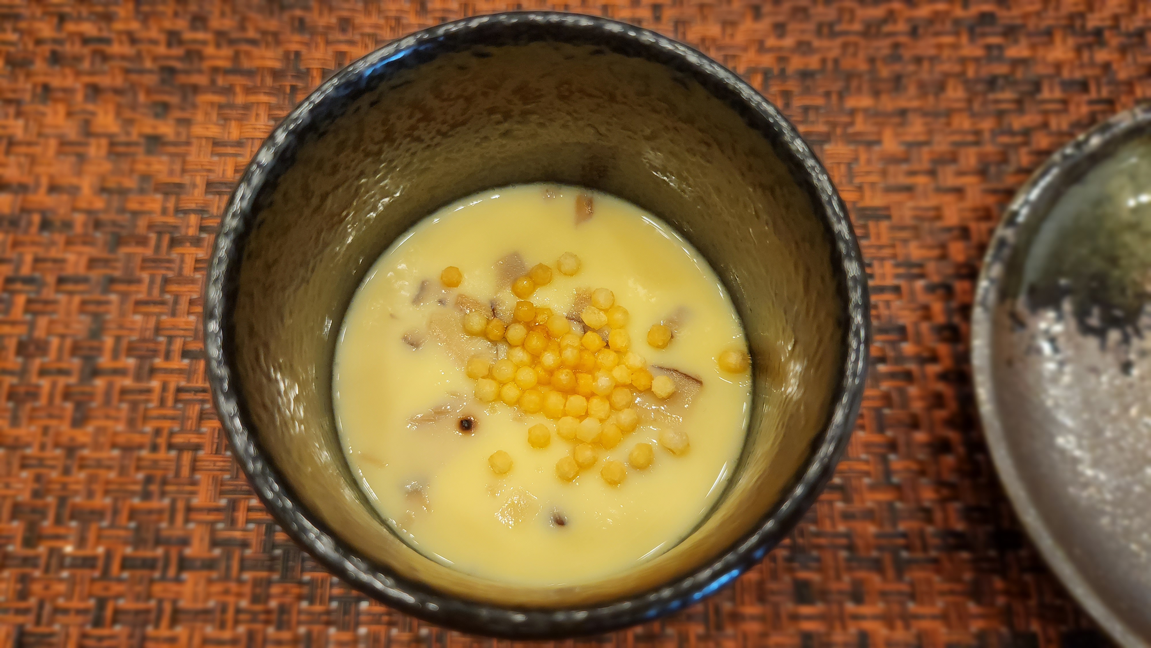 크런치 볼을 올린 자완무시. 안에는 새우(?)가 들어 있는데 너무 뜨거워서 입이 다 데일 뻔했다. 맛은 좋았음.