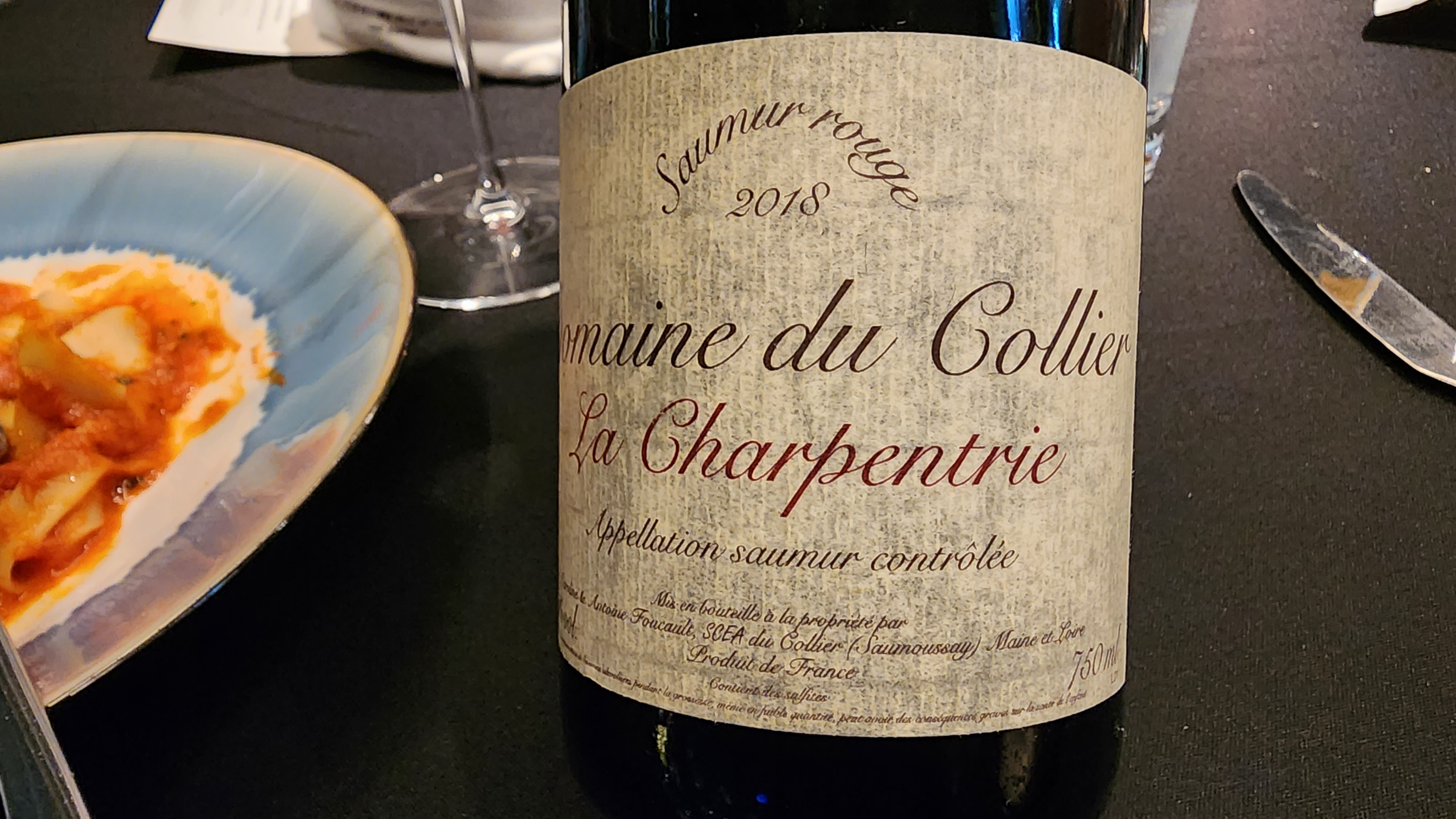 정답은 Domaine du Collier, La Charpentrie Saumur Rouge 2018. 카베르네 프랑 100%로 만든 와인이다. 소뮈르에서도 이렇게 (비싸고) 고급진 레드가 나오는구나... 감탄했던.