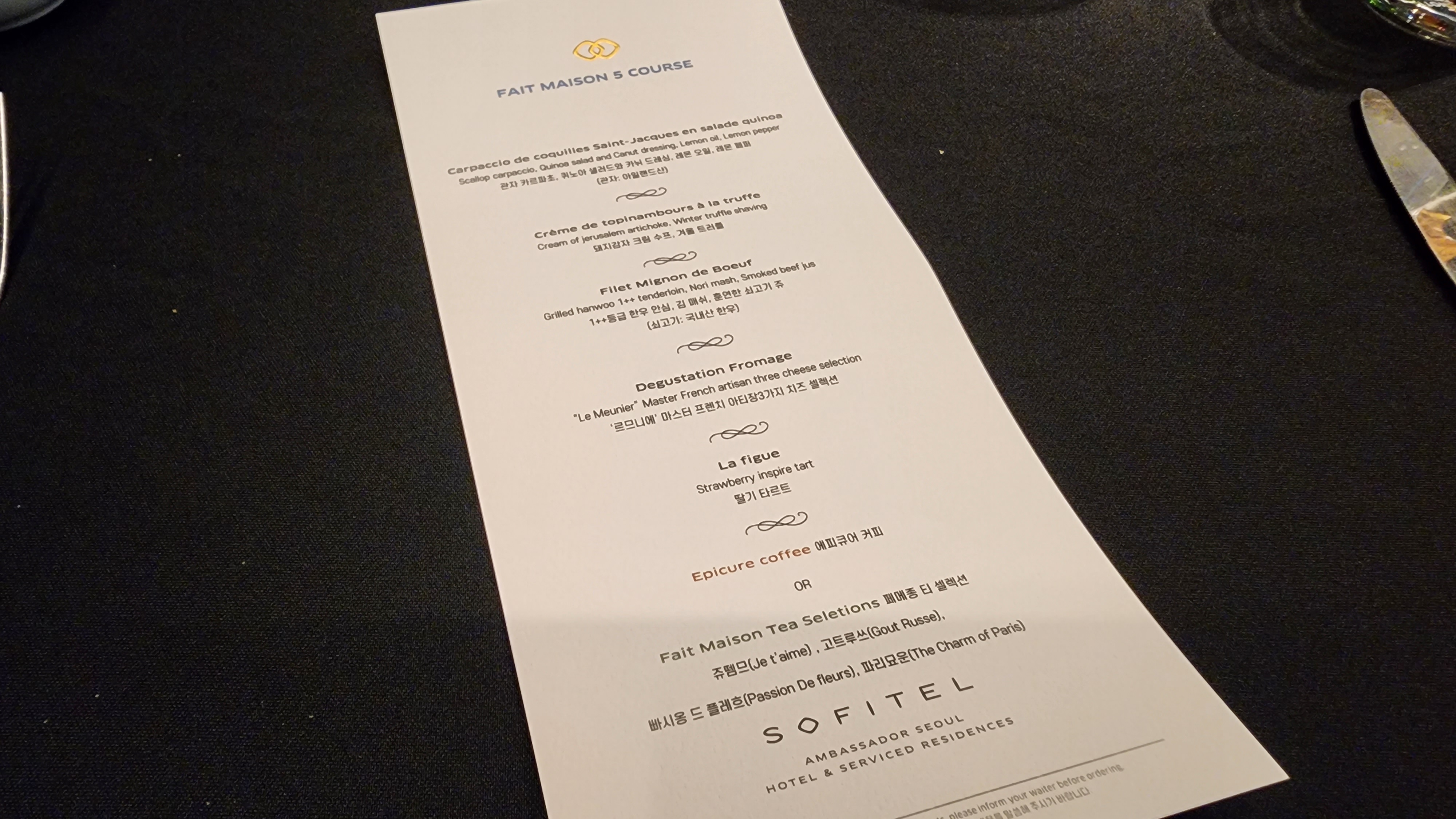 소피텔 식음총괄 정하봉 이사님의 인사. 좋은 자리 내어 주신 것도 고마운데 이렇게 인사까지 와 주시고 감사할 따름이다. 나중에 따로 편하게 한 잔 기울일 기회가 있었으면.