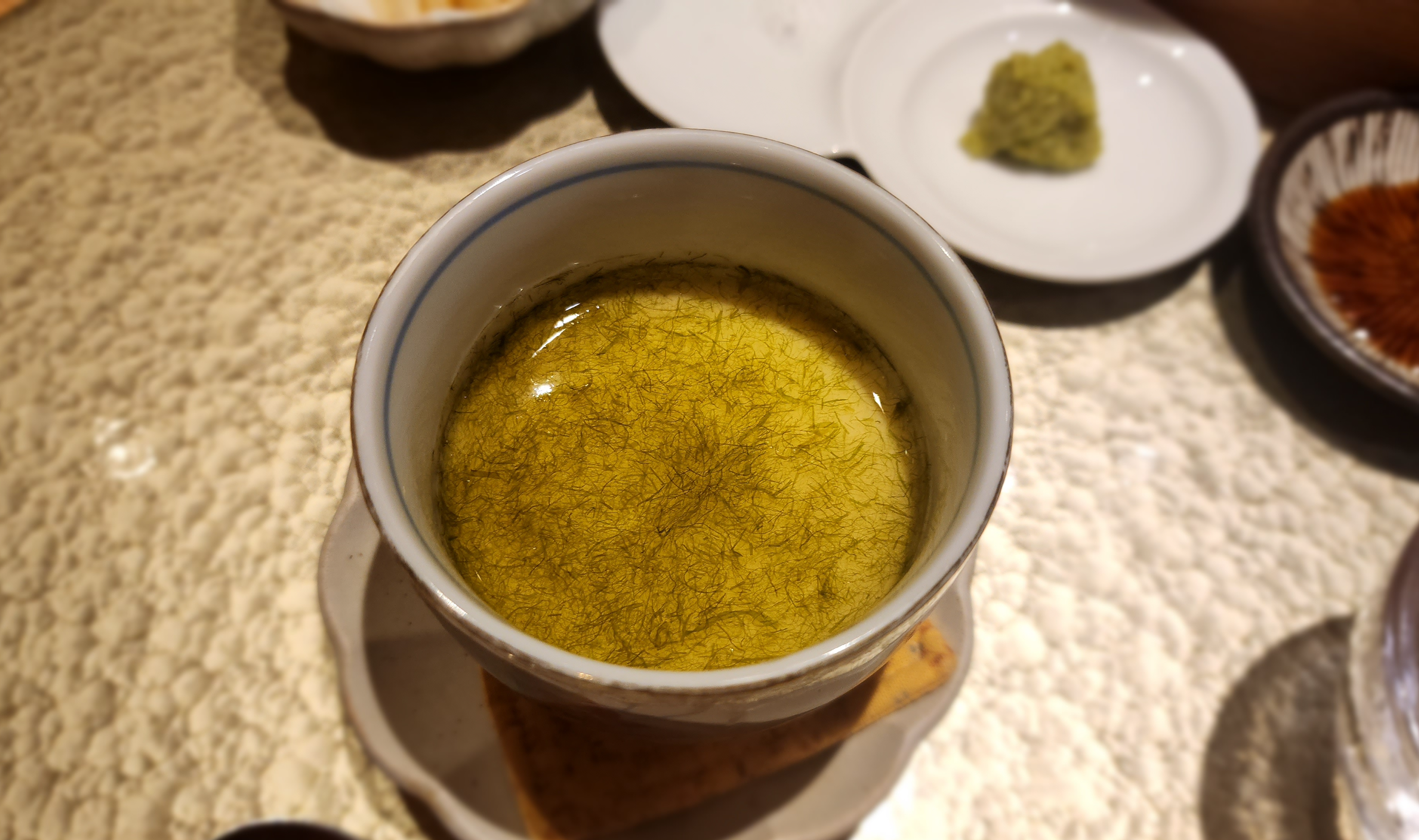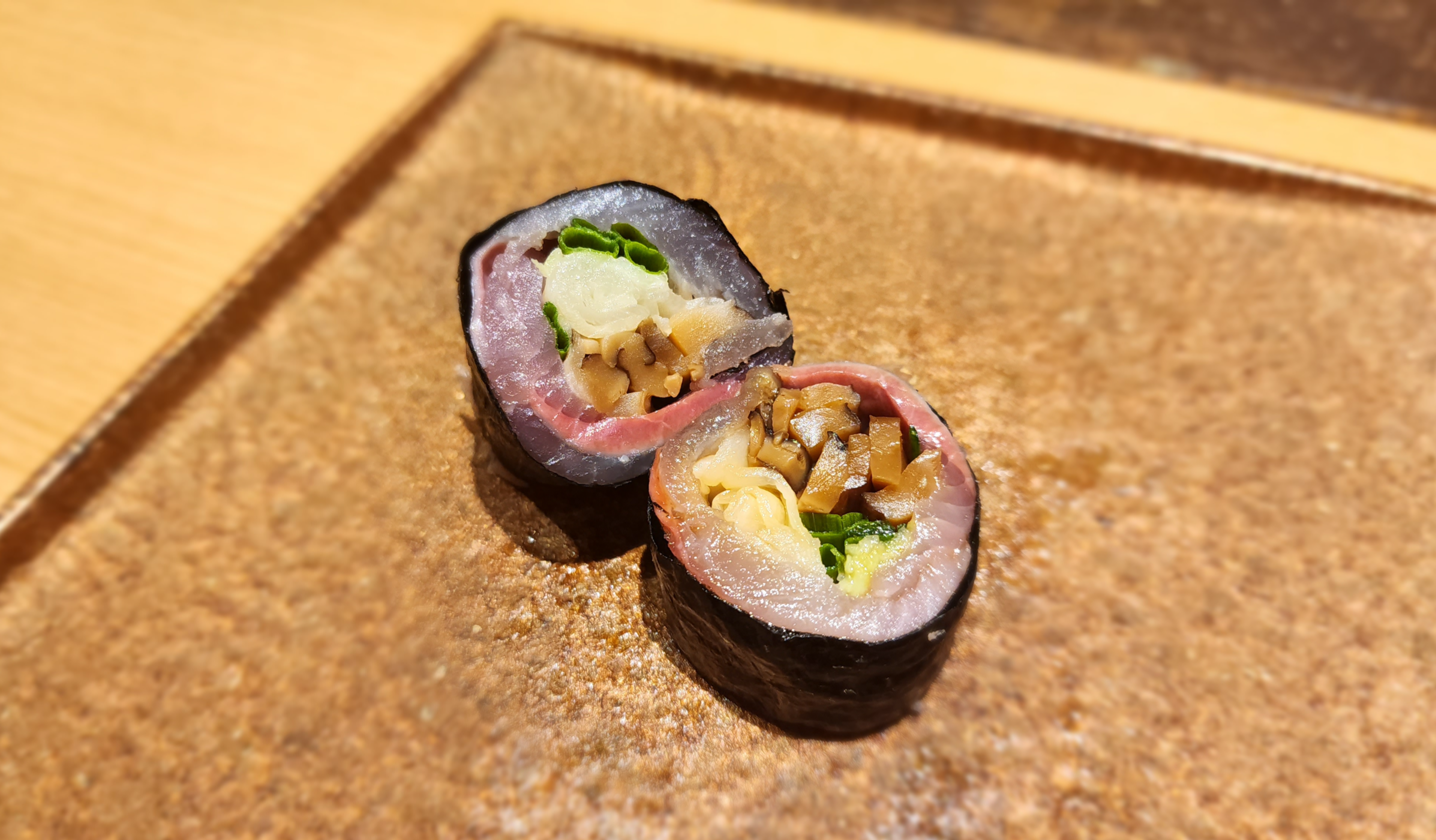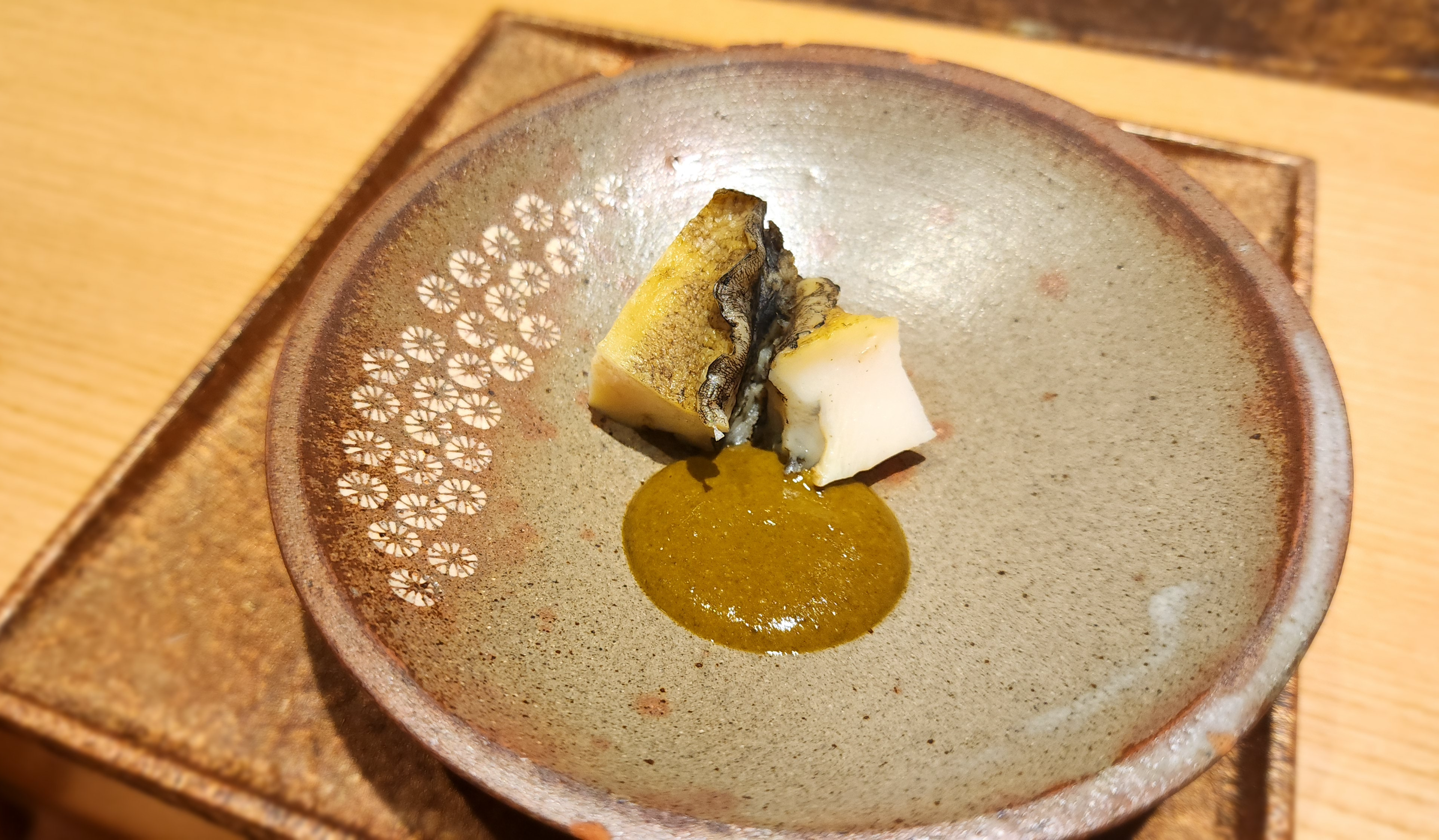 여기서 사케 한 병 추가. 마쓰이 슈조 카구라 준마이 루리(松井酒造, 神蔵 純米 ルリ). 두 병을 추천해 주셨는데 더 비싼 걸로 달라고 했더니 이걸 주셨다ㅋㅋㅋ