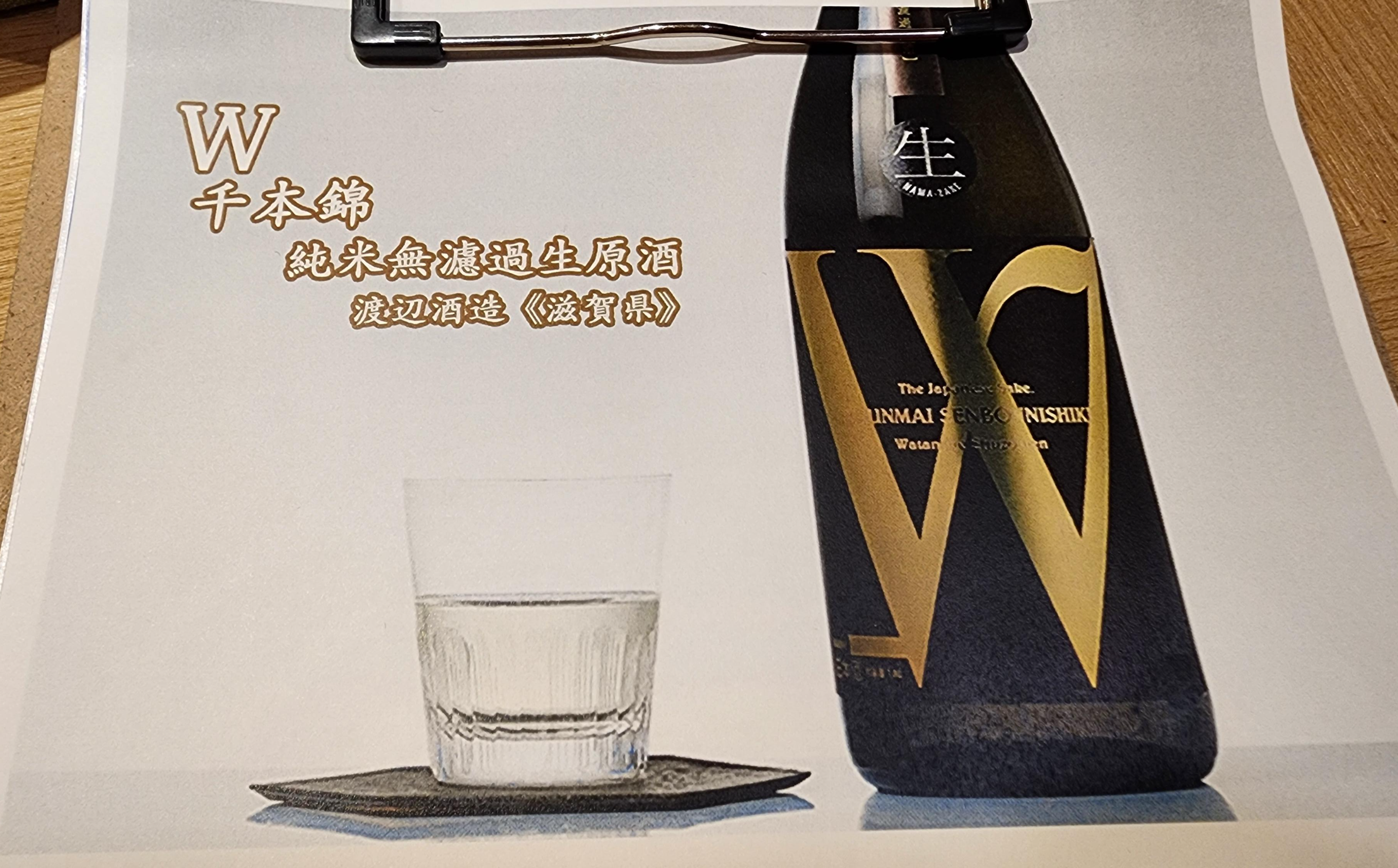 와타나베 슈조텐, W 센본니시키 준마이 무로카나마겐슈(渡辺酒造店, W 千本錦 純米 無濾過生原酒).