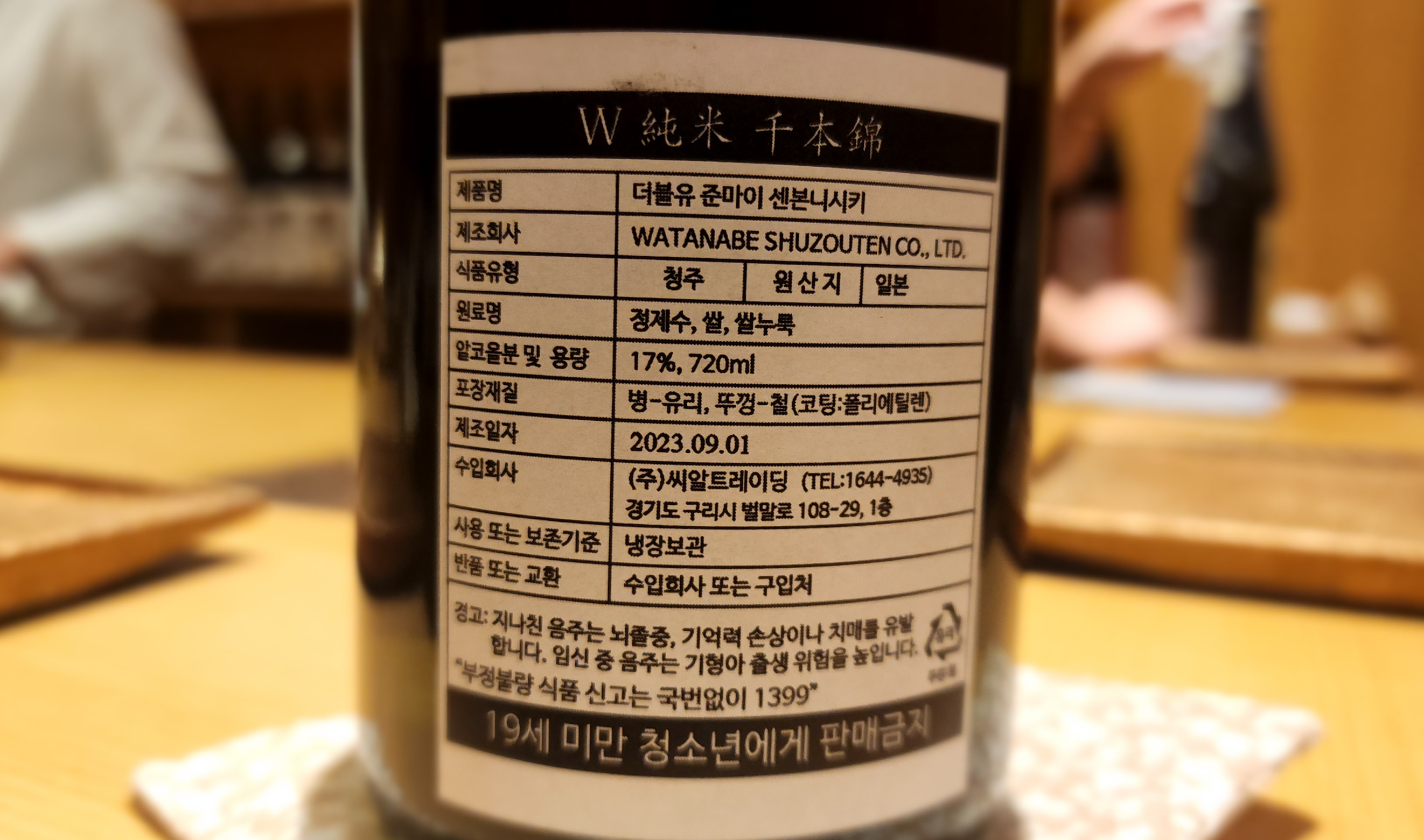 2023년 9월 1일에 병입한 아주 싱싱한 사케다.