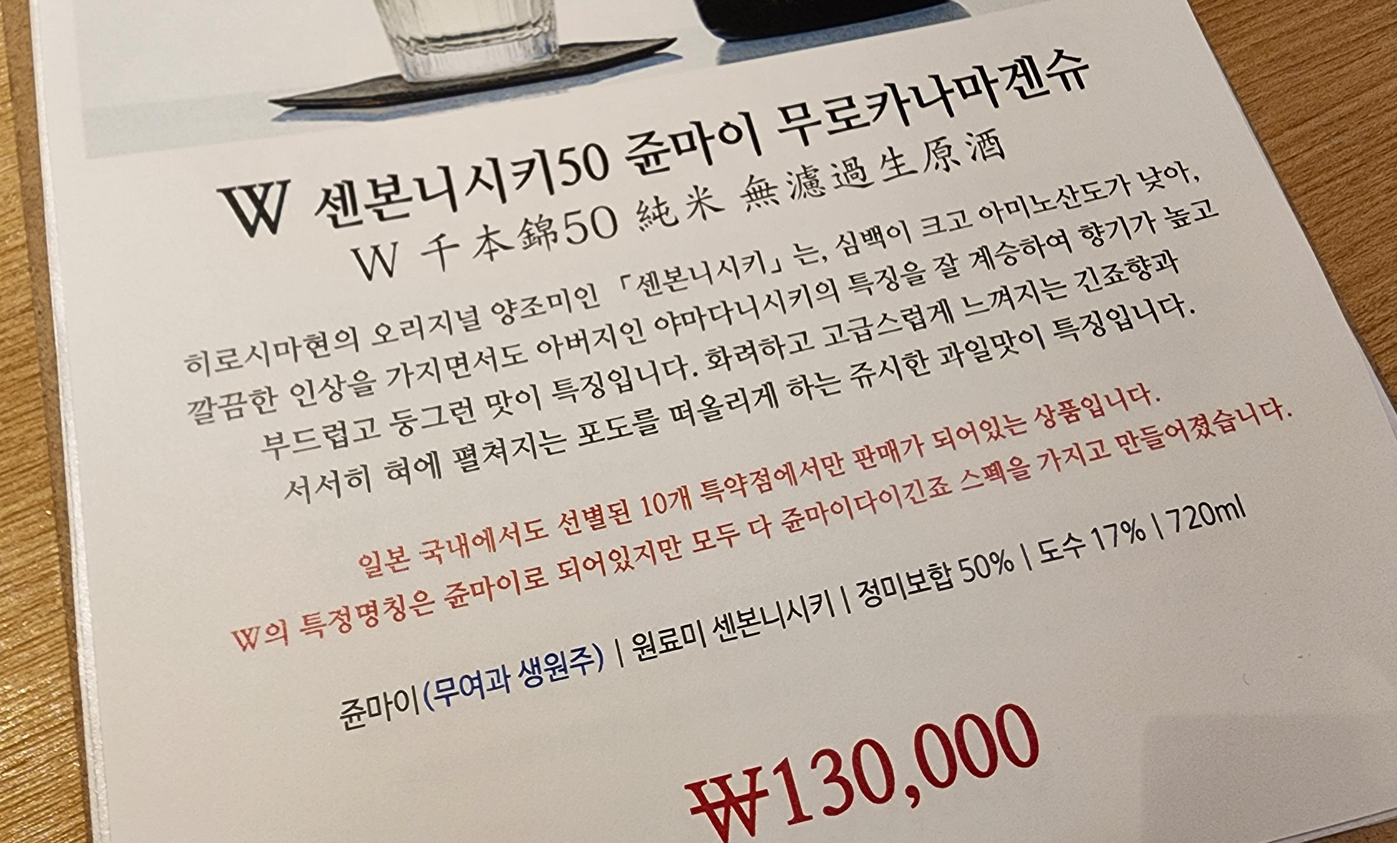 정미보합 65%에 무여과, 물을 더하지 않은 생주다. 요것도 제법 맛있게 마셨음. 하지만 이 한 병이 결국 숙취를 남긴 듯...ㅠㅠ