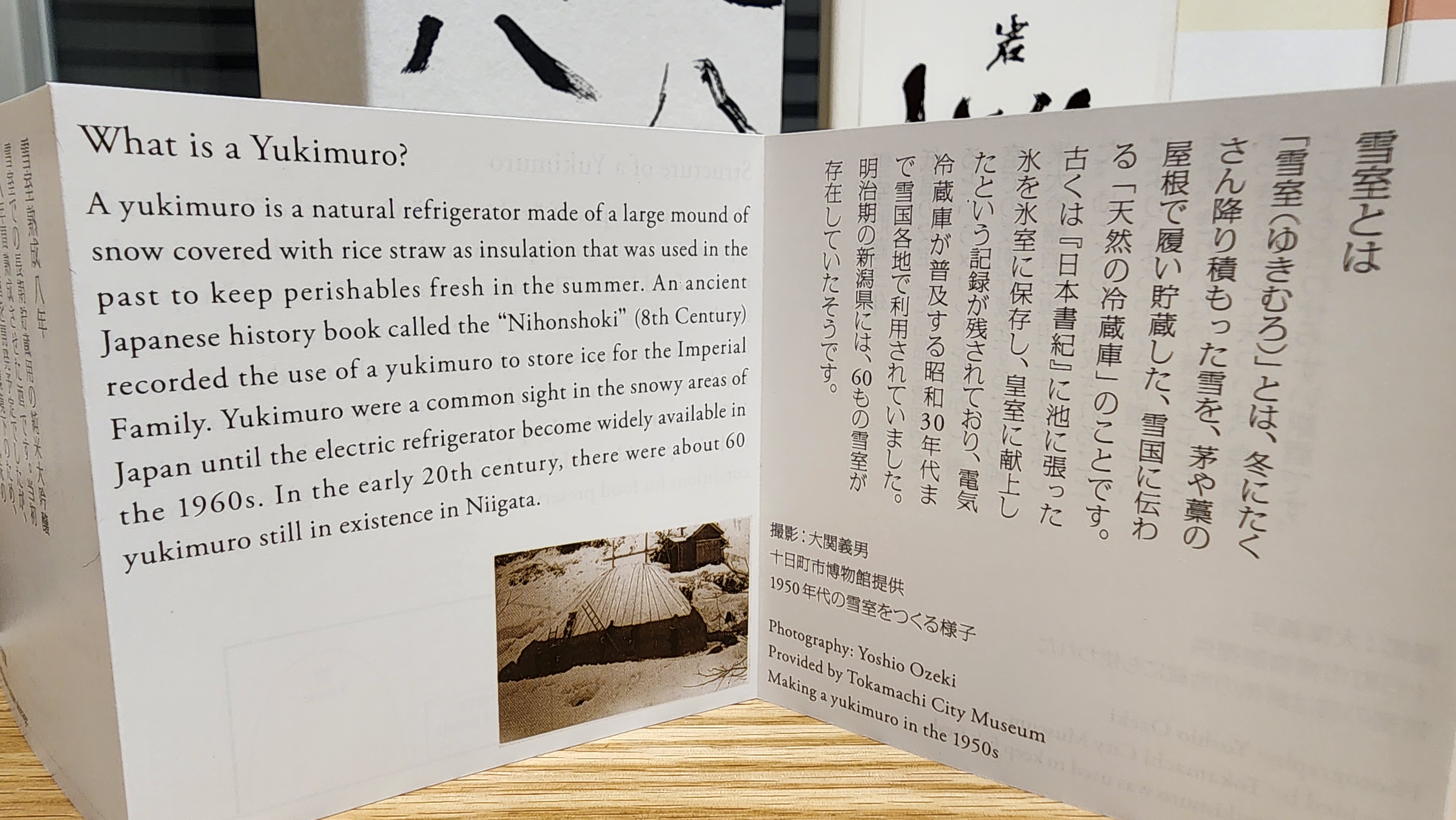핵심은 유키무로(雪室). 한자를 보면 바로 알 수 있듯 눈으로 만든 방으로, 천연 냉장고와 같은 역할을 한다. <일본서기>에 이 유키무로를 왕족을 위한 저장고로 사용했다는 기록이 있다고. 눈이 많은 지역에서는 흔히 사용해 왔으며, 20세기 초까지만 해도 니가타현(新潟縣)에 60개 이상의 유키무로가 있었다고 한다.