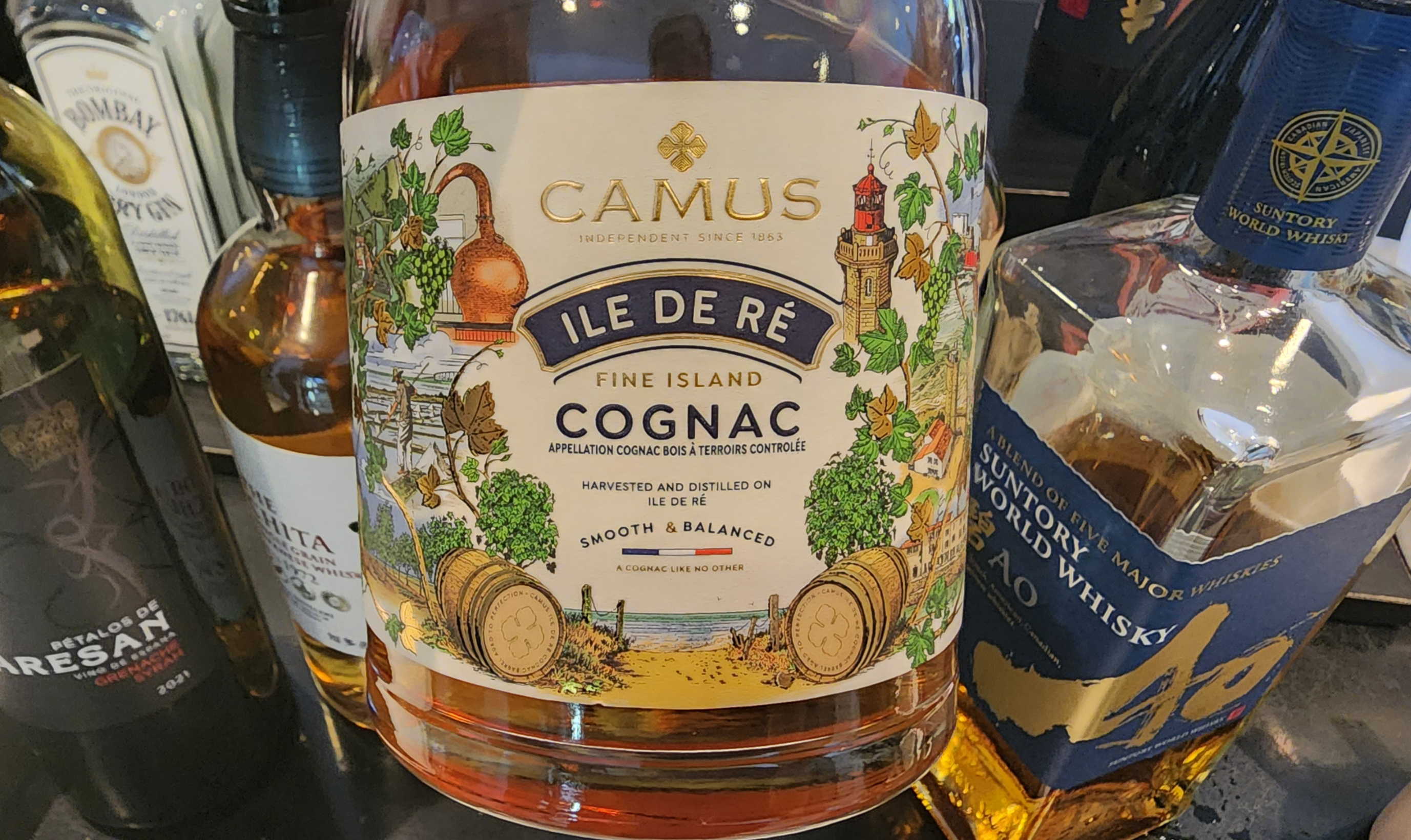 그리고 Camus Ile de Ré Fine Island Cognac. 코냑 서쪽 바다에 있는 섬 이름을 딴 코냑인데 레이블이 귀여워 처음부터 눈길이 갔다. 잔에 따르니 톡 쏘는 후추와 아세톤 뉘앙스, 자두 같은 흰 과일 아로마가 가볍지만 명확히 드러난다. 입에서는 가벼운 바디와 구조, 그리고 약간의 황 같은 힌트. 어쨌거나 첫 느낌부터 편안해 술술 넘어간다. 그런데 얘는 얼음이 녹을수록 바디가 너무 가볍고 피니시도 뚝 끊기는 느낌. 요건 그냥 니트로 마시는 게 나을 것 같다. 시원하게 마시고 싶다면 미리 충분히 칠링 해서 니트로 마시거나 커다란 각얼음을 넣어 마실 것을 추천.
