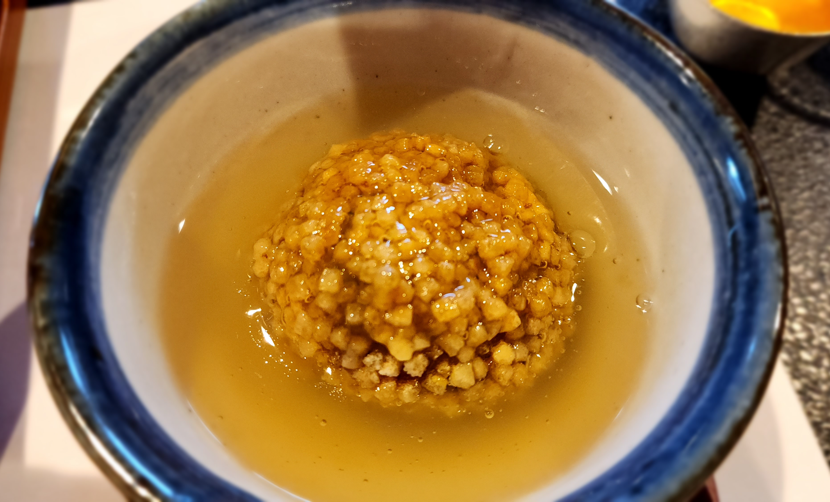 덴뿌라. 꽈리고추, 가지까지는 아주 좋았다. 기대감 상승하며 새우를 먹었는데... 튀김옷이 문제였다. 굵은 쌀가루를 넣은, 옷 자체는 상당히 맛있었지만 새우맛을 다 잡아먹는 게 문제랄까. 새우도 싱싱하고 튀김옷도 맛있는데 합치면 애매해지는 안타까운 상황ㅠㅠ 그냥 일반 튀김옷으로 해 주시지..