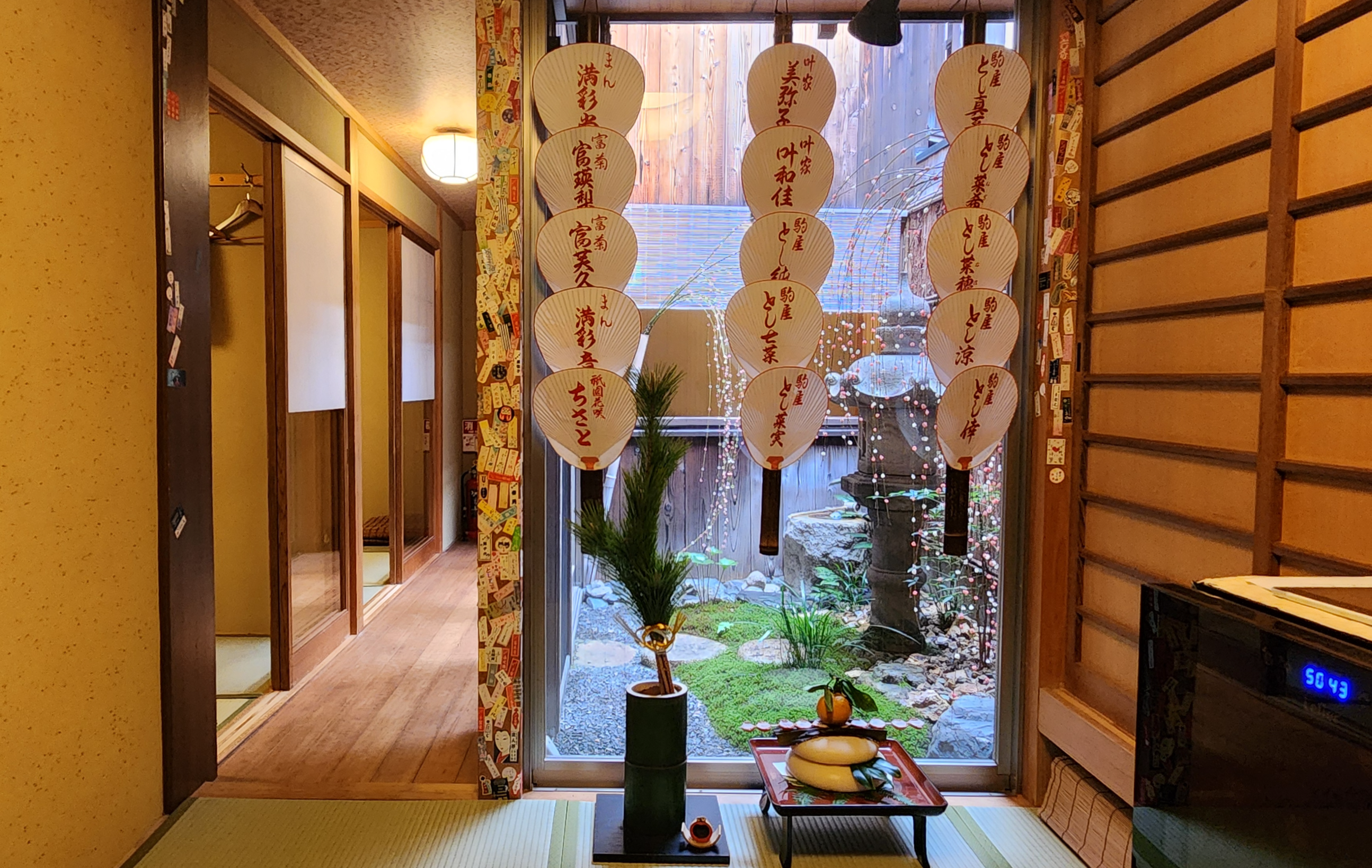 입구 위에는 정월을 기념하는 장식이 달려 있다. 연말연시에 교토를 가니 어딜 가도 저 장식이 달려있더라는.